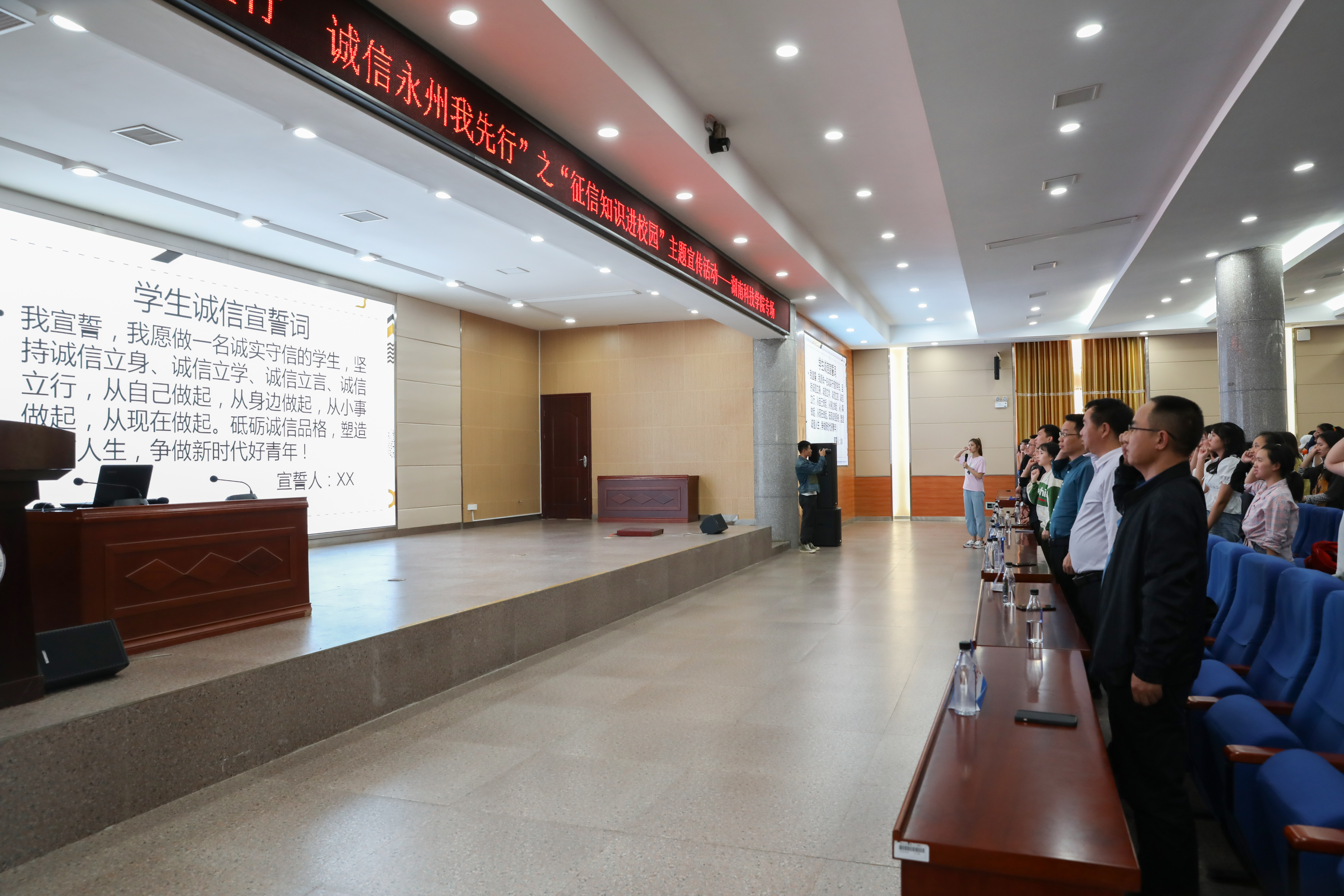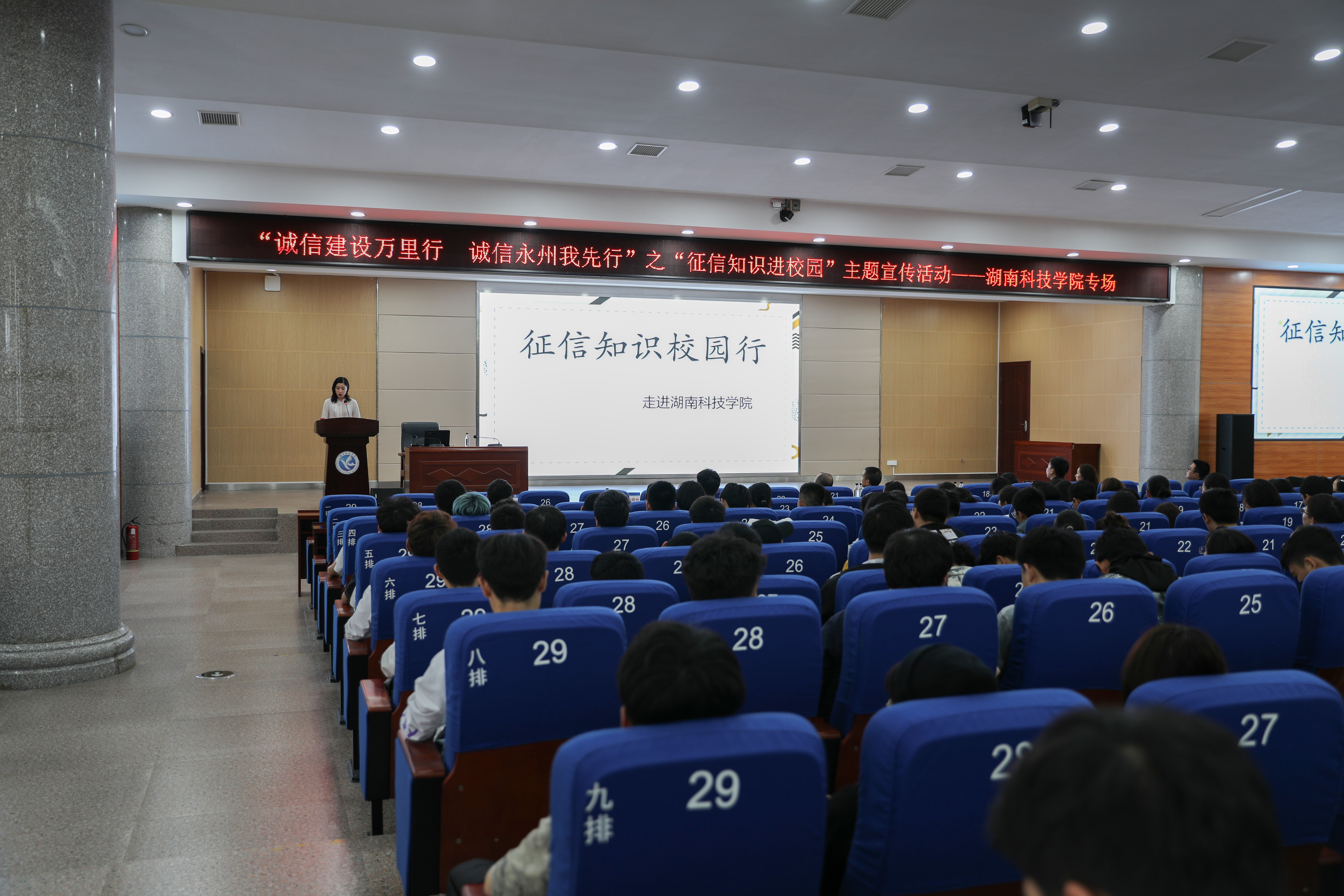 本网讯(实习记者 黄彩燕 周芳梅 周欣怡)为全面推进永州市全国社会信用体系建设示范城市创建工作,11月18日,由中共永州市委宣传部、中国人民银行永州市中心支行、永州市行政审批服务局主办,学校与中国银行永州分行联合承办的“诚信建设万里行,诚信永州我先行”之“征信知识校园行”主题宣讲活动金沙集团1862cc专场在潇湘大讲堂举行,学校600余名学生到场聆听。