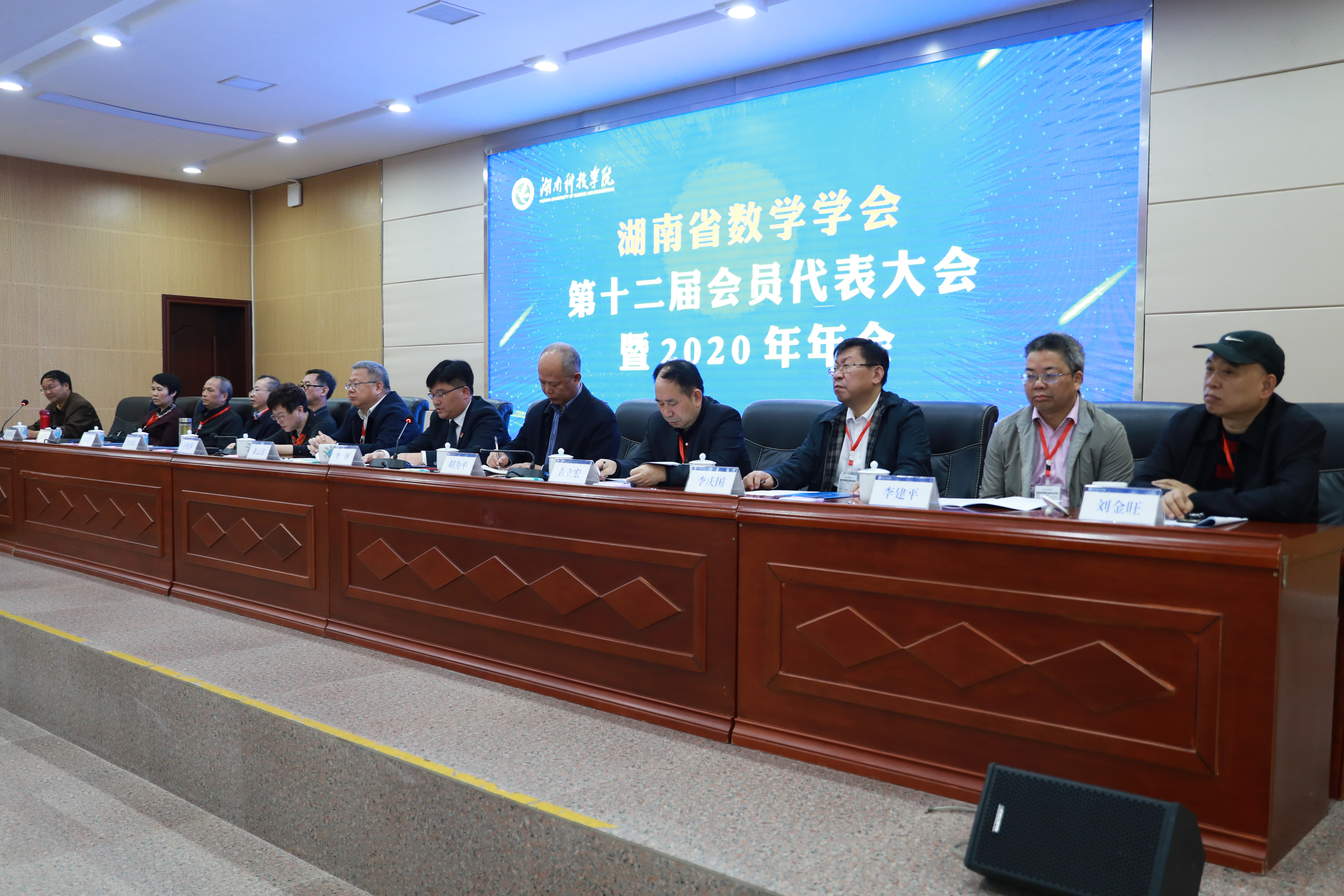 省数学学会理事长、湘潭大学党委书记黄云清,金沙集团党委副书记、校长李钢,湘南学院党委副书记、校长王晓萍,省科协学术工作部部长胡为平,省科协组织人事部调研员、省数学学会第一书记杜金珉,学会副理事长、长沙理工大学副校长黄立宏,副理事长、吉首大学副校长黎奇升,副理事长李庆国、刘再明、李建平、谢资清、刘金旺出席会议。学会秘书长刘建州主持会议。