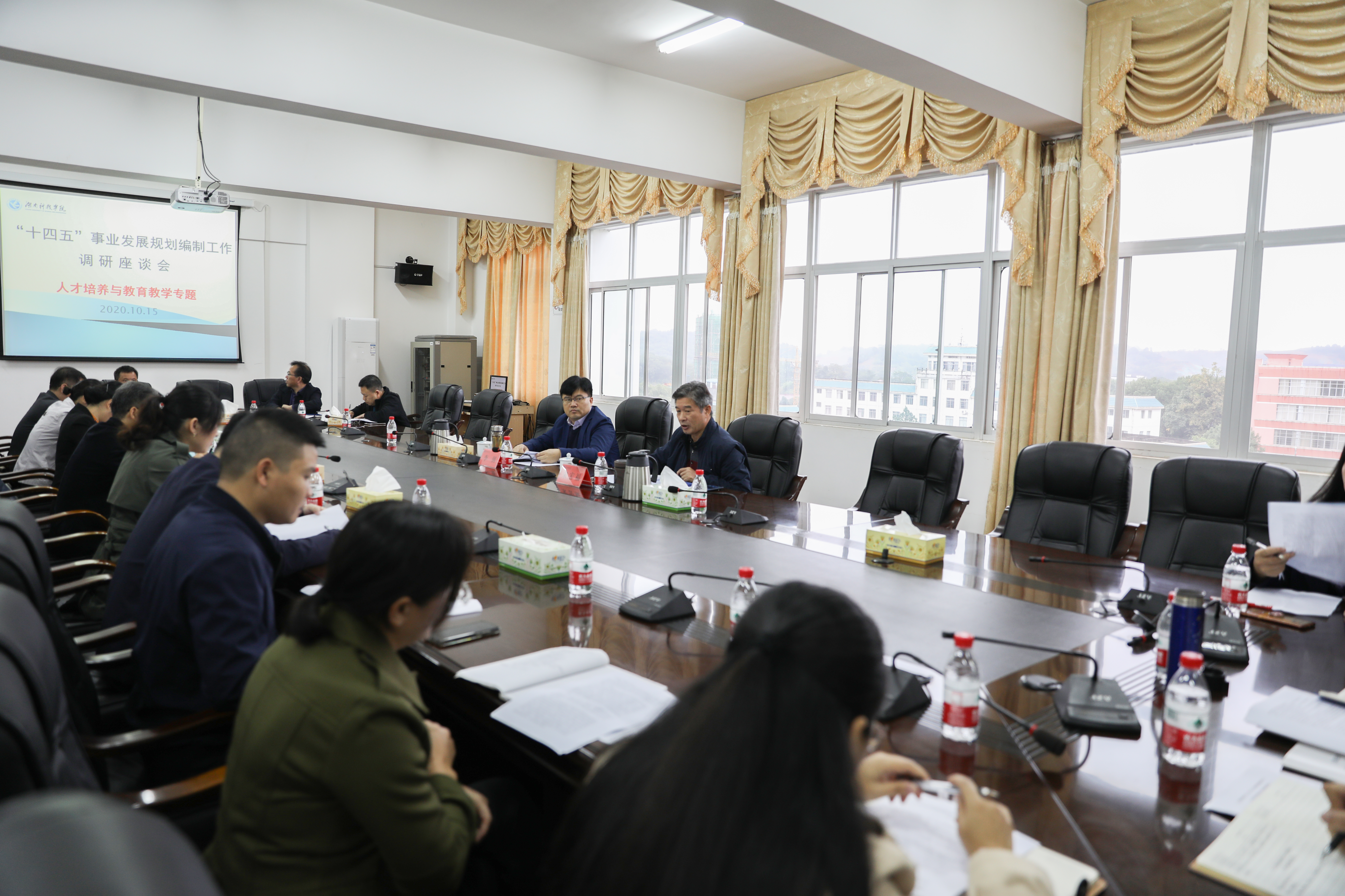 曾宝成在讲话中强调,“十四五”时期是学校新一轮内涵发展、特色发展、跨越发展的战略机遇期,科学编制学校“十四五”事业发展规划,进一步明确今后五年学校的发展愿景、目标任务、战略重点,对实现学校高质量发展具有十分重要的现实意义。他要求,要切实把思想和行动统一到习近平总书记关于教育的重要论述和在湖南考察时的重要讲话精神上来,把学习贯彻落实习近平总书记重要讲话精神与推动学校内涵式发展贯通起来,与培养德智体美劳全面发展的社会主义建设者和接班人贯通起来,与办人民满意的高等教育贯通起来。在研究制定学校“十四五”事业发展规划时要认真研究、全面落实全国教育大会、学校思政理论课教师座谈会等重要会议精神,做到站位高、研究深、谋划远、目标明、思路清、举措实,积极谋划学校事业发展的新思路新举措,补足短板、加固底板、拉长长板,注重登高望远、注重研判形势、注重问题引领、注重项目抓实,更加突出重点发力、突出特色发展、突出创新驱动、突出内涵建设,着力增强“十四五”事业发展规划编制的战略性、科学性、针对性和可操作性。