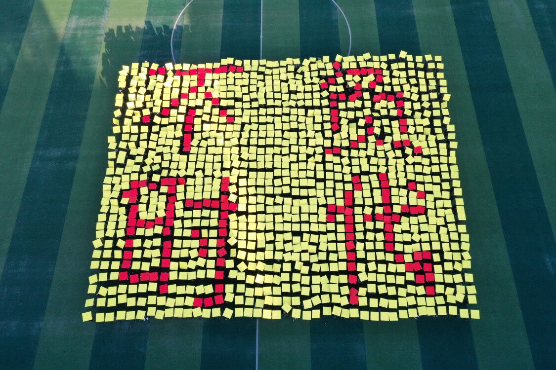 本网讯 10月22日,学校举行了一场大型的“以青春之名告白祖国”活动,由1200名军训新生组成的巨型摆字方阵,通过队形变换摆出“不负青春”“不负韶华”“不负时代” “我爱中国”等字眼,表达了青年学子以青春之我、奋斗之我的贡献新时代的责任担当和爱国情怀。