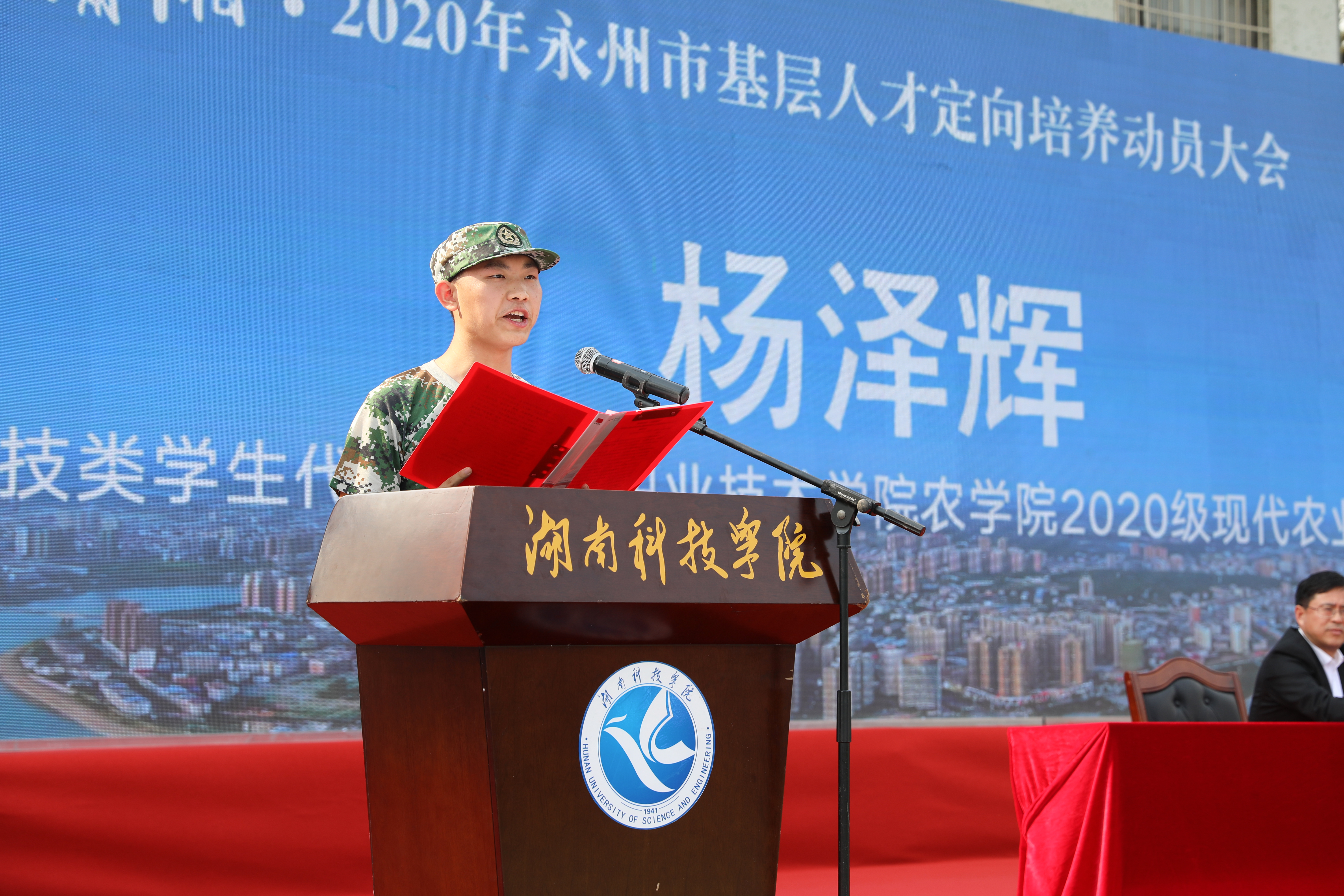 教育、医卫、农技三类定向培养学生代表依次发言,1000多名基层人才定向培养学生进行了集中宣誓。