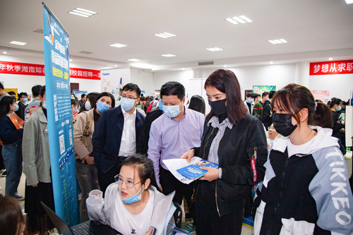 本网讯(通讯员 周忠夏)10月15日下午,2020年秋季湖南知名企业巡回校园招聘会在金沙集团举行,本次招聘会共吸引了蓝思科技股份有限公司、中国石化湖南石油分公司、北京学而思教育科技有限公司长沙分公司等54家用人单位参会,提供就业岗位3400余个,800余名毕业生到场参加竞聘。