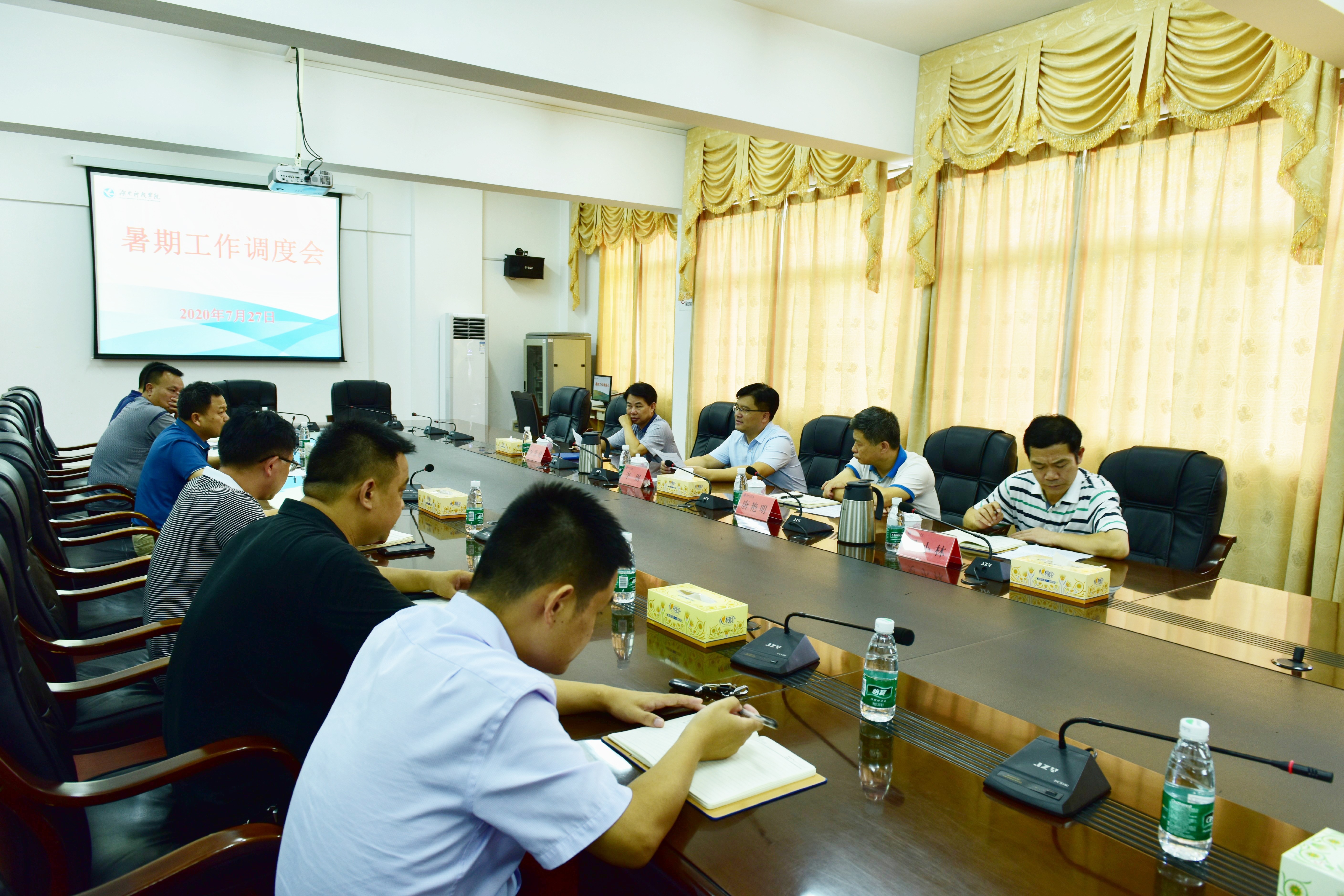 随后,学校暑期工作调度会在行政楼六楼会议室举行。党政办、教务处、采购中心、基建处、保卫处、后勤服务总公司等部门负责人分别就暑期相关工作进行了汇报。