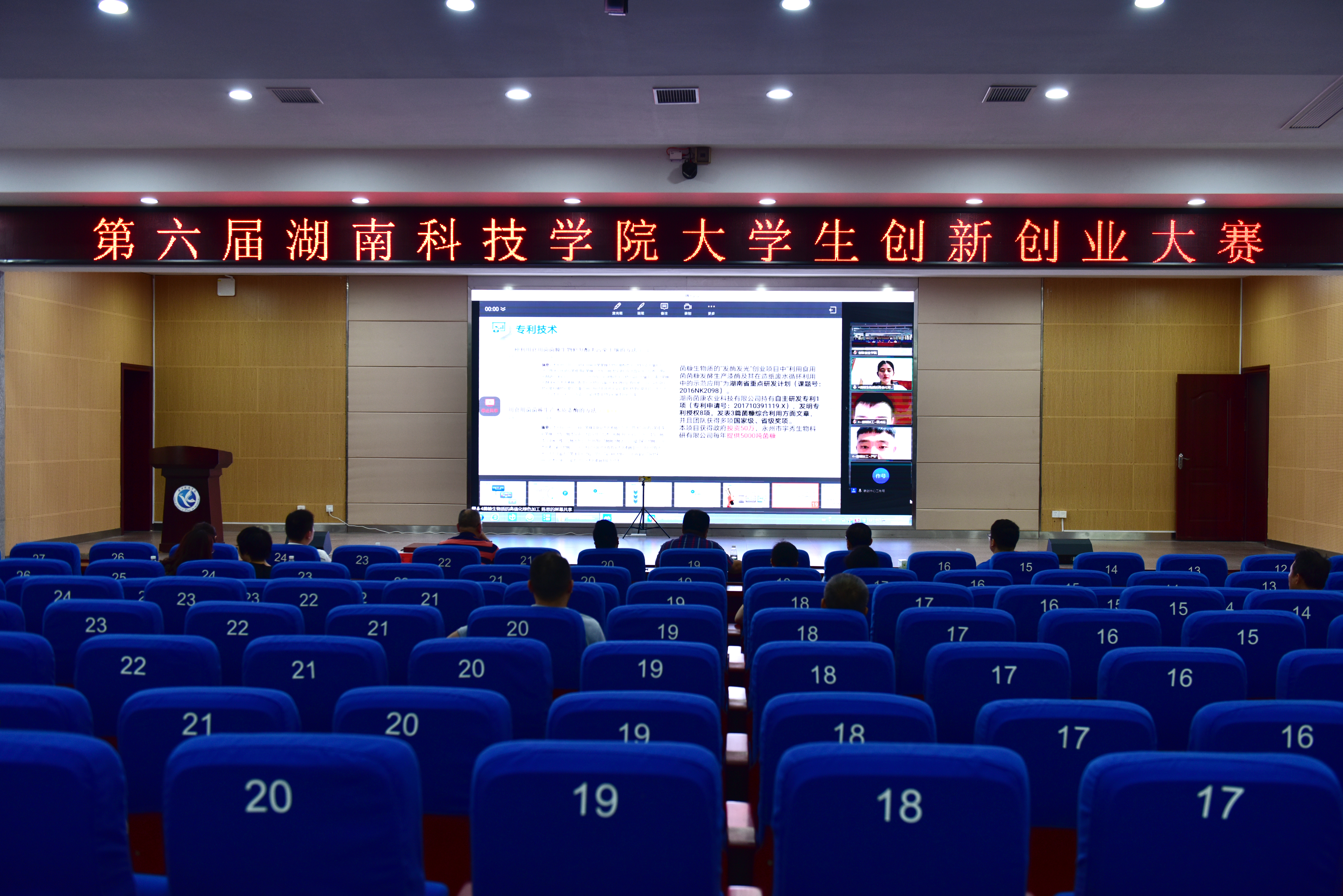 大赛由创新创业学院主办,由教务处、科技处、学工部、团委、校友会协办。247个项目经校外专家盲审,最终确定42个项目入围决赛。因受疫情影响,决赛实行线上路演评审,分为项目展示和答辩两个环节。参赛团队结合PPT,对项目创新性、团队情况、商业性等进行陈述,评委就项目有关问题进行质询和点评,进一步论证项目的可行性,并结合各项目的实际情况提出建设性意见。