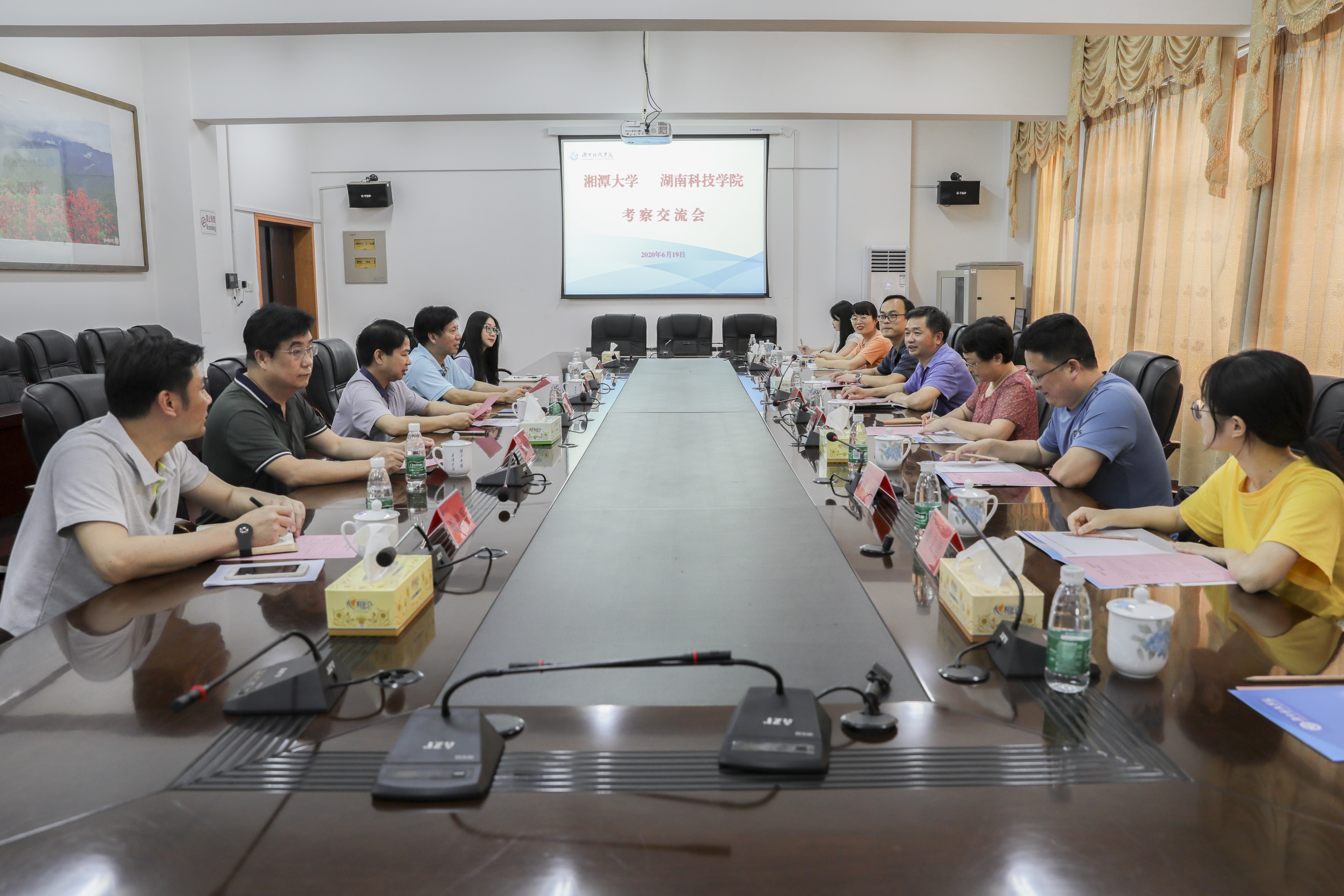 本网讯 6月19日下午,湘潭大学党委教师工作部部长、教师教学发展中心主任刘稳丰,教学质量监督与评估中心主任吴红一行来校考察,并与金沙集团相关处室开展座谈并进行对口交流。副校长李常健出席座谈会。
