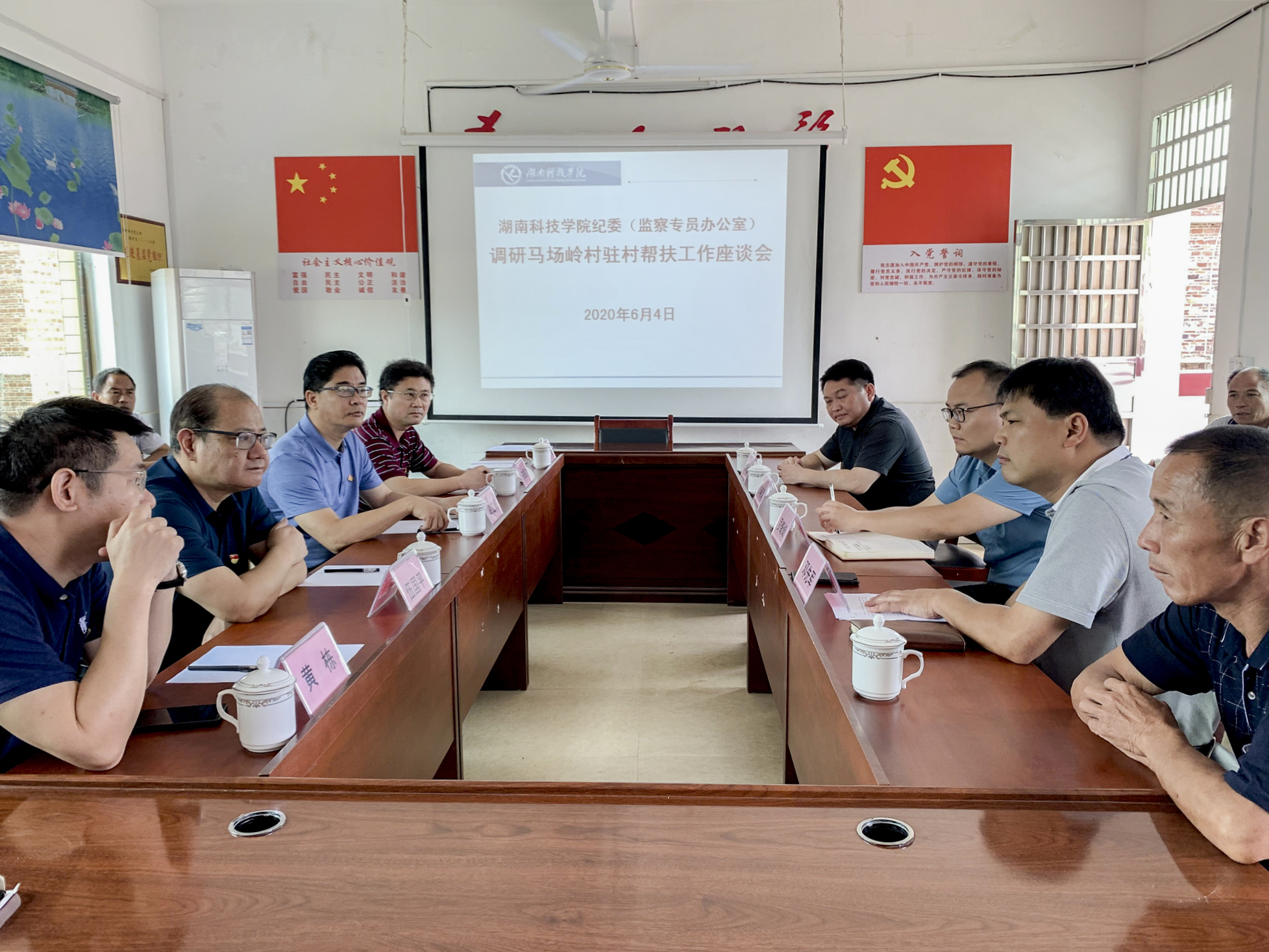 在推进会上,学校驻村帮扶工作队负责人就今年以来开展的疫情防控、脱贫攻坚“回头看”主要工作,马场岭村的显著变化等情况作了全面回顾,并就下一阶段工作思路作了详细的汇报。新田县委组织部扶贫办负责人罗奇峰和枧头镇党委书记刘雄辉充分肯定了学校驻村帮扶工作成效,对工作队勤勉务实、担当作为的工作作风给予了高度赞誉,并表示将全力支持驻村帮扶工作,巩固扩大帮扶成果,共同打造一支不走的工作队。