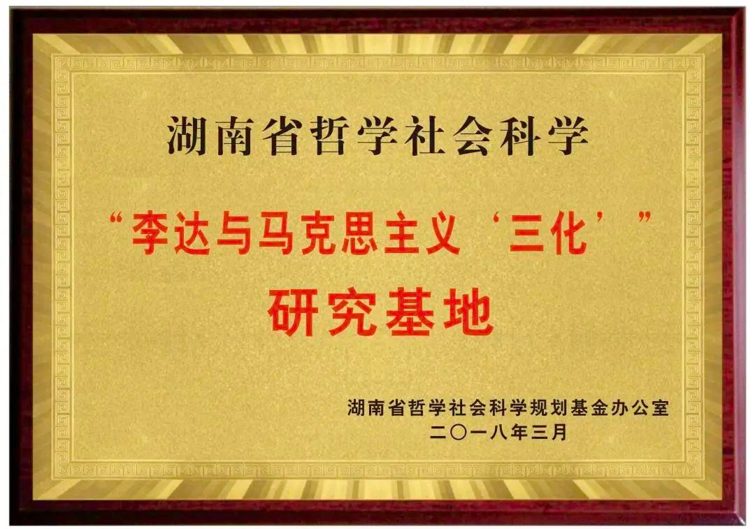湖南省哲学社会科学“李达与马克思主义‘三化’”研究基地