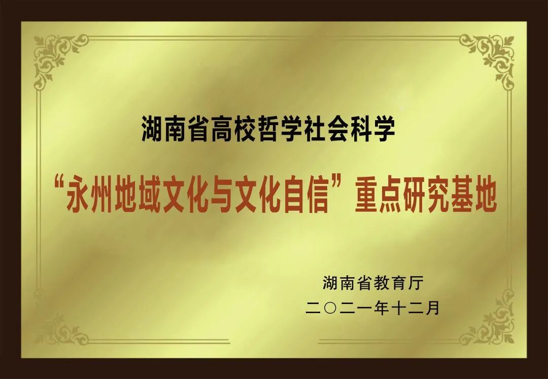 湖南省高校哲学社会科学“永州地域文化与文化自信”重点研究基地