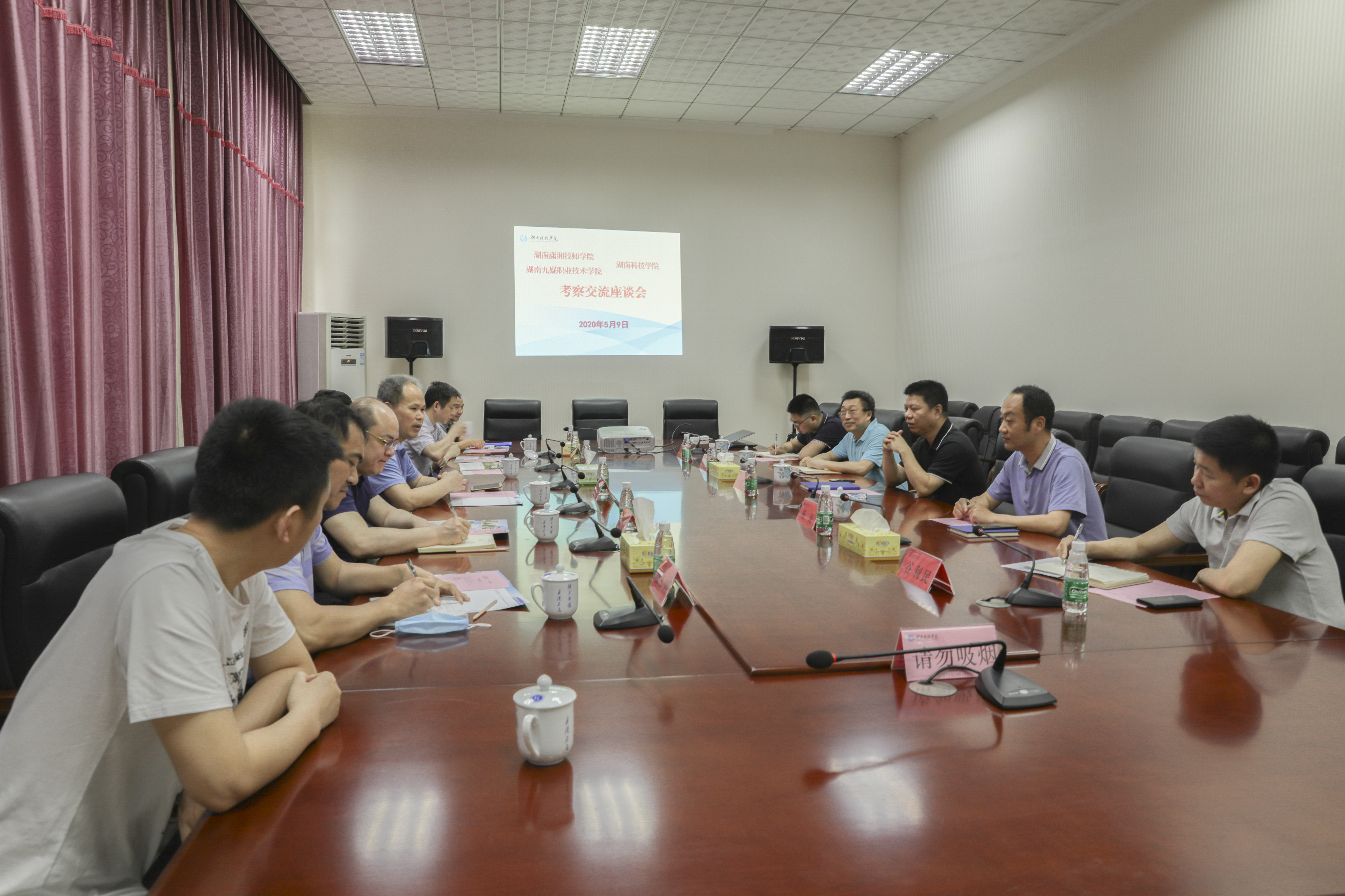 本网讯 5月9日上午,湖南潇湘技师学院(湖南九嶷职业技术学院)党委副书记何增明、纪委书记易清国、副院长陈强一行来校考察交流。副校长程智开出席座谈会。