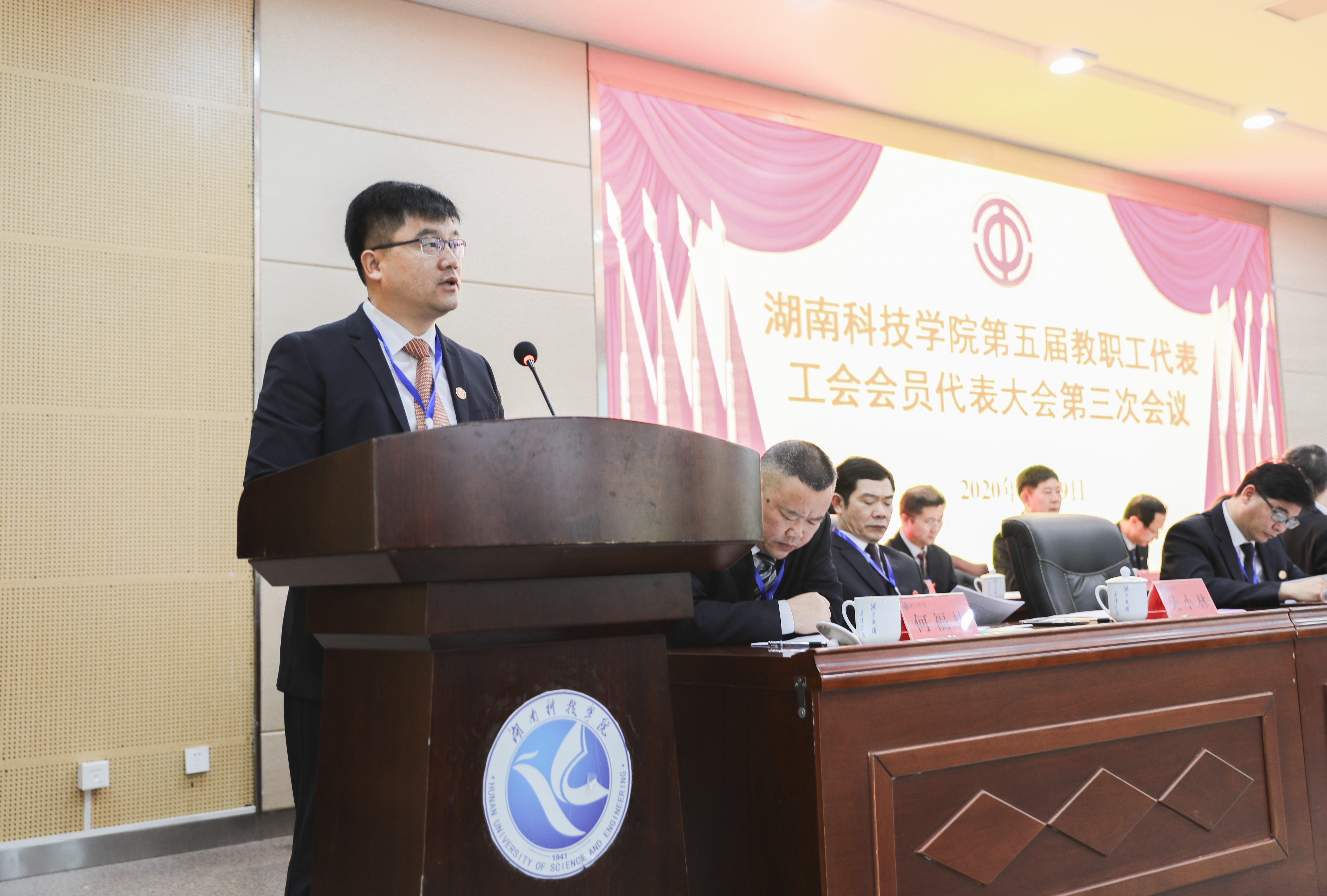 党委副书记、工会主席唐艳明作题为《贯彻“六个坚持” 进一步推进工会工作再上新台阶》的工会工作报告。他回顾了2019年的工会工作并提出了2020年工会工作新任务:一是注重政治引领,进一步优化政治生态;二是加强民主管理,进一步推进依法治校;三是注重教育培训,进一步提高职工素质;四是强化服务意识,进一步做好关爱工程;五是开展文体活动,进一步培育校园文化;六是加强自身建设,进一步提升工会活力。