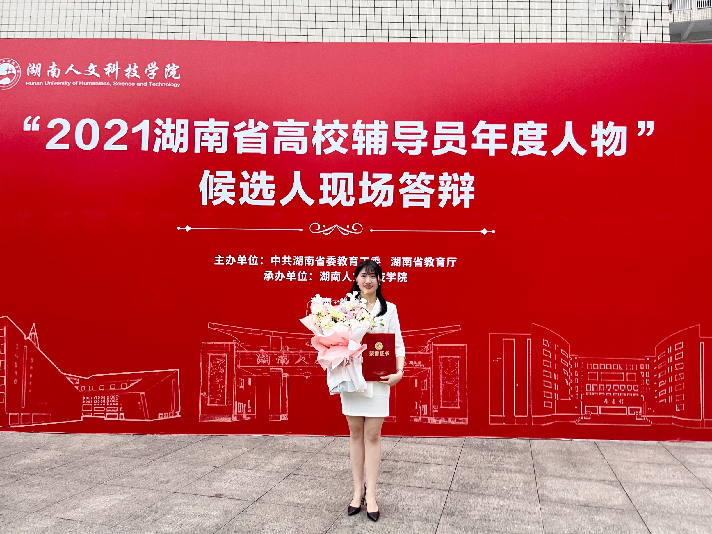 近日,由省委教育工委、省教育厅举办的“2021年湖南省高校辅导员年度人物”答辩评选活动结果揭晓,金沙集团1862cc彭凡思以《“凡”心所向,当学生身边的“小红书”》为主题,针对学生的思想政治教育工作,分享了她的育人目标、育人思路和育人实效。凭借其扎实的理论功底、丰富的实践经验和良好的心理素质,获得了评委们的高度肯定,荣获“2021湖南省高校辅导员年度人物”。