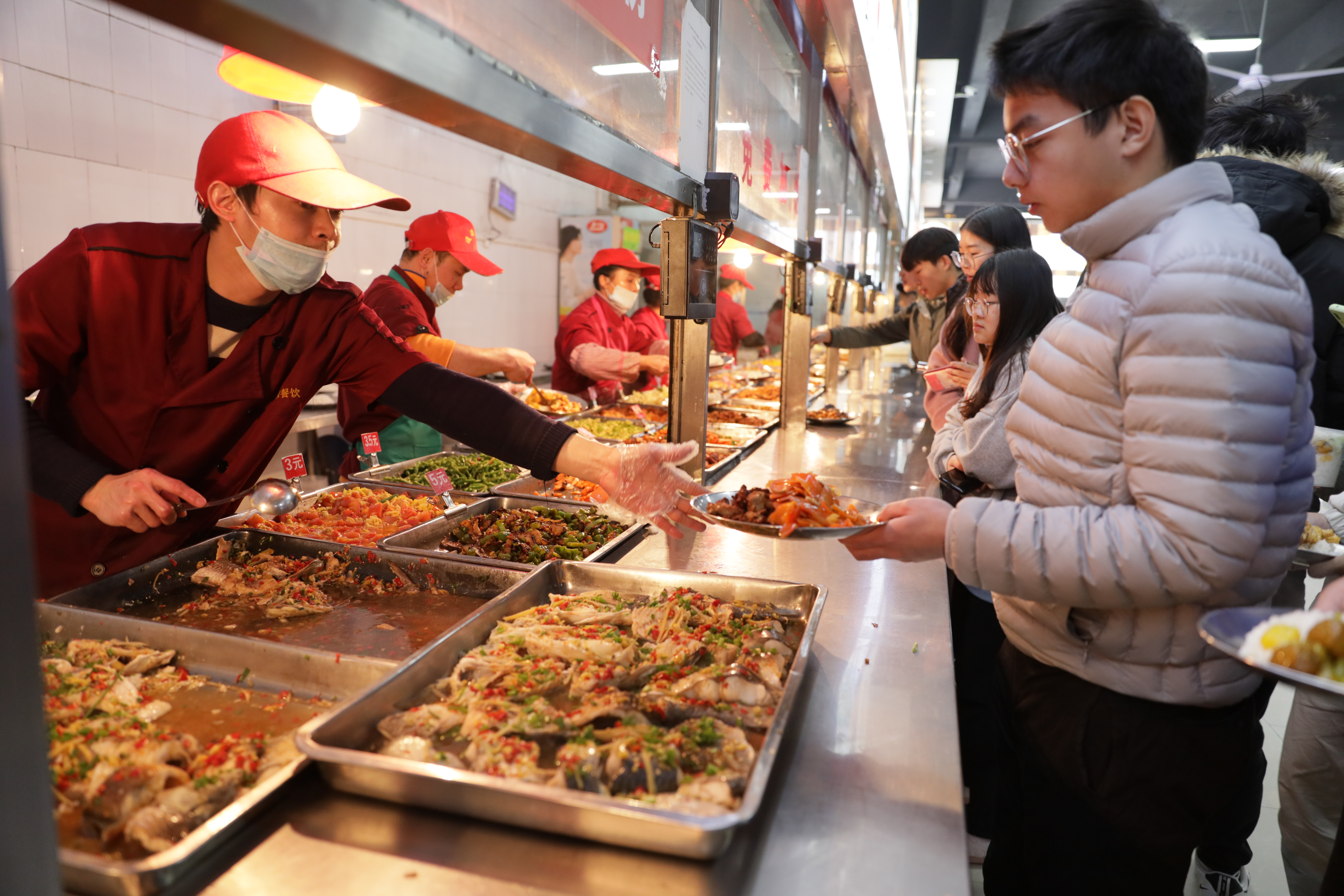 30到31日,鱼宴开席,教工食堂和学生食堂为大家精心烹饪鲜鱼大餐,剁椒鱼头、水煮鱼、红烧鱼、曲米鱼……不同风味的鲜鱼纷纷端上师生的餐桌,大家品鱼宴,话丰收,食堂里处处洋溢着浓浓的“年”味。党委书记曾宝成也来到松园食堂,与学生共同品尝鱼宴,共话新年,并向大家致以新年的祝福。