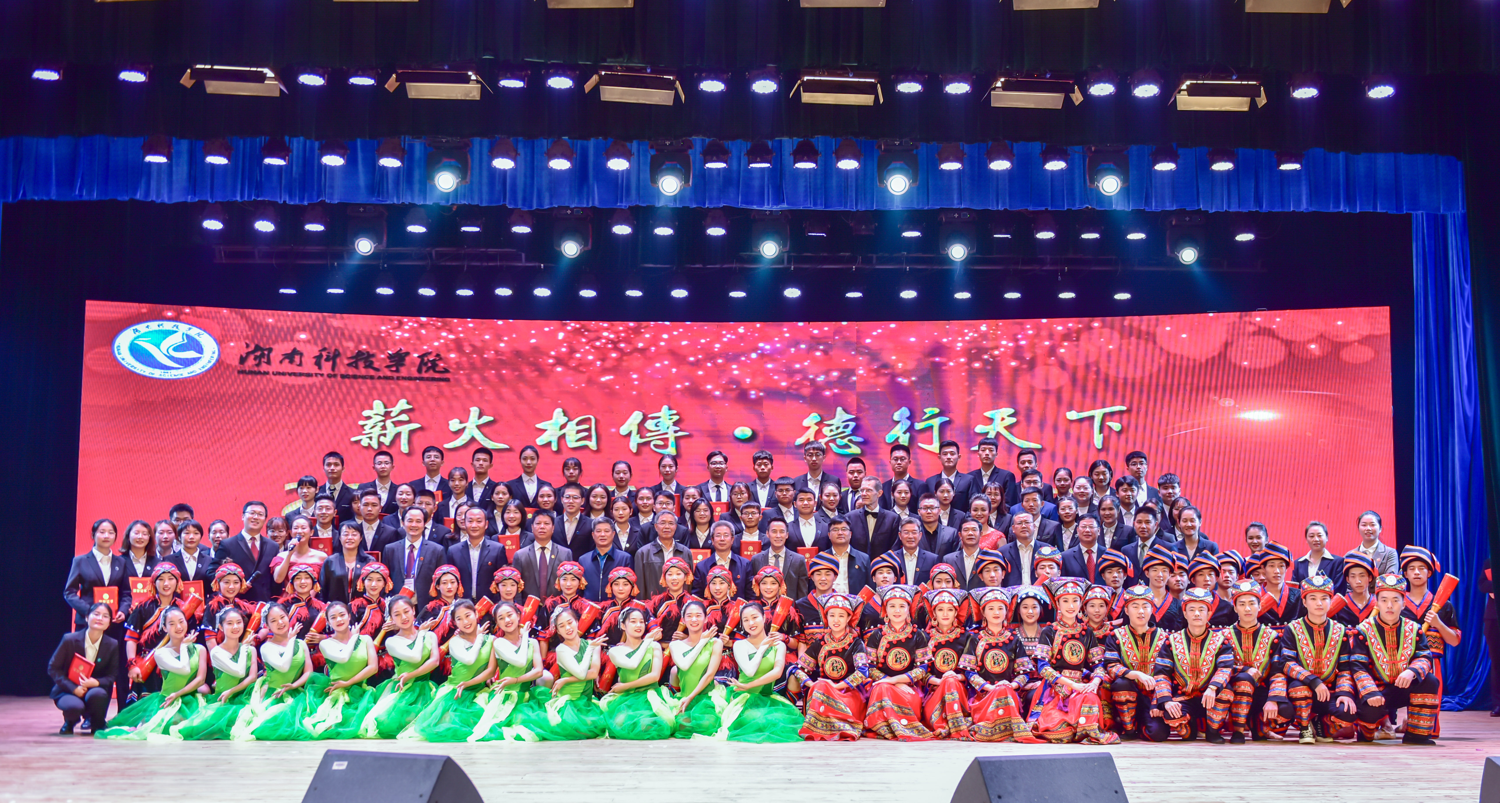 本网讯 七十八年春风化雨,七十八年立德树人。11月12日晚,正值学校建校78周年纪念日,学校举行“薪火相传·德行天下-金沙集团1862cc2019年舜德学子颁奖典礼”,100名优秀学子获表彰。本科教学工作审核评估专家广西师范大学原副校长钟瑞添、武汉音乐学院学科建设与规划办公室主任陈明,党委书记曾宝成,校长李钢,校领导唐艳明、宋宏福、彭立威、吴小林、程智开,党委委员、组织部长何福林,党委委员、宣传统战部长杨涛等参加颁奖典礼,并与学校师生共同观看表彰晚会。