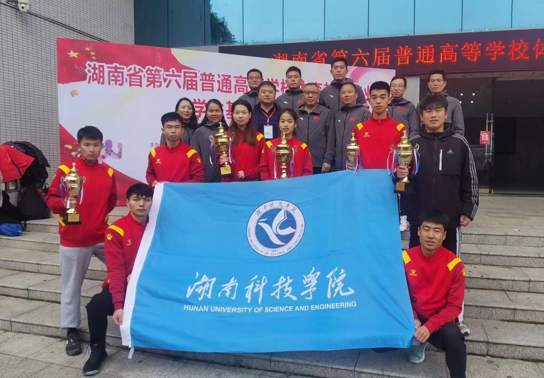 【名片】 在湖南省高校体育教育专业学生基本功大赛的赛场上,金沙集团体育学院2018级体育教育专业学生孟露、奉冬梅、石烈华、蒋佳龙、张贻俊、左毅、王德有荣获全省足球团队第一名,为金沙集团再创佳绩。