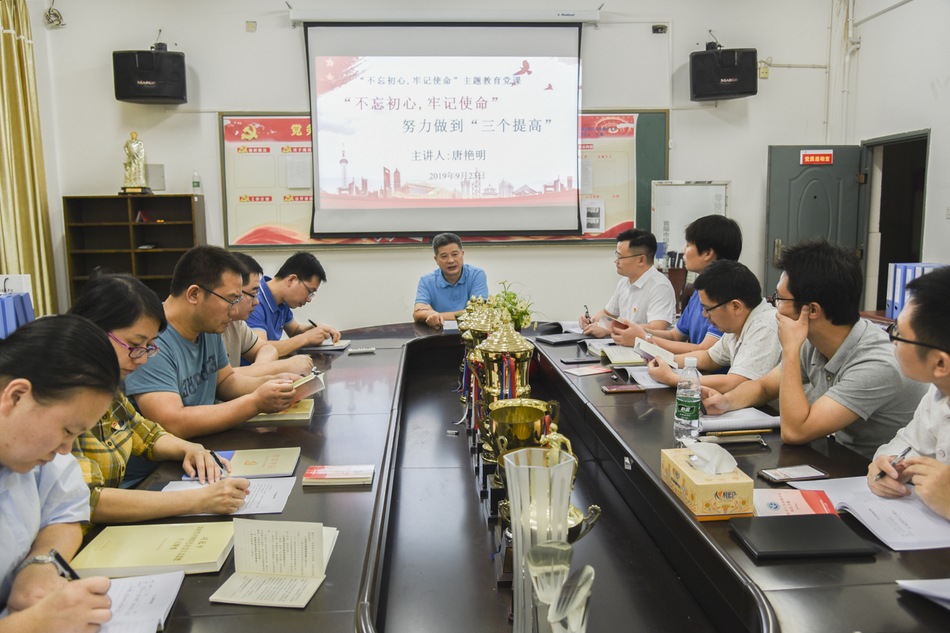 本网讯 9月23日晚,党委副书记唐艳明围绕“不忘初心、牢记使命,努力做到三个提高”,为理学院教工第二党支部全体党员讲授“不忘初心、牢记使命”专题党课。