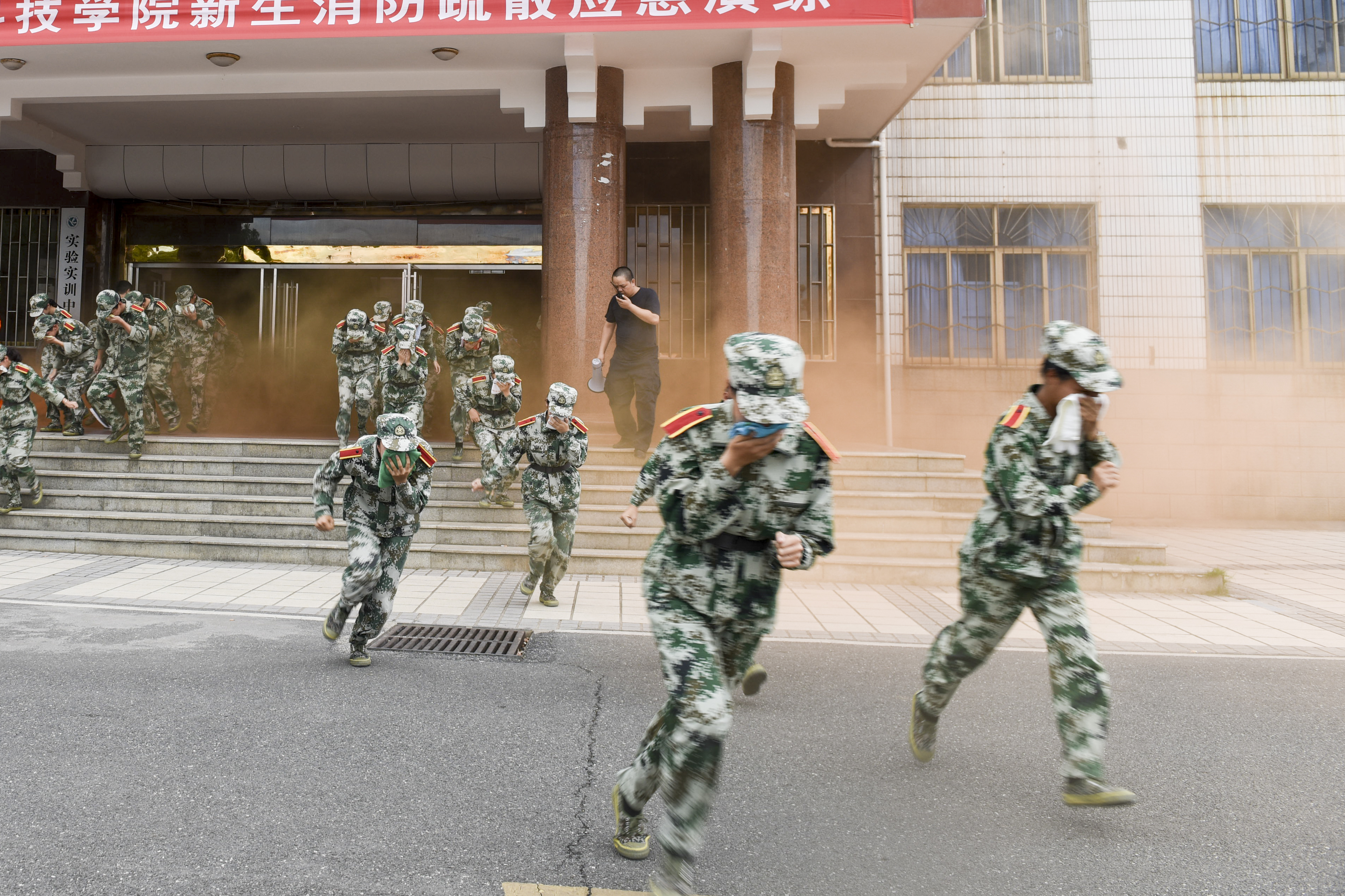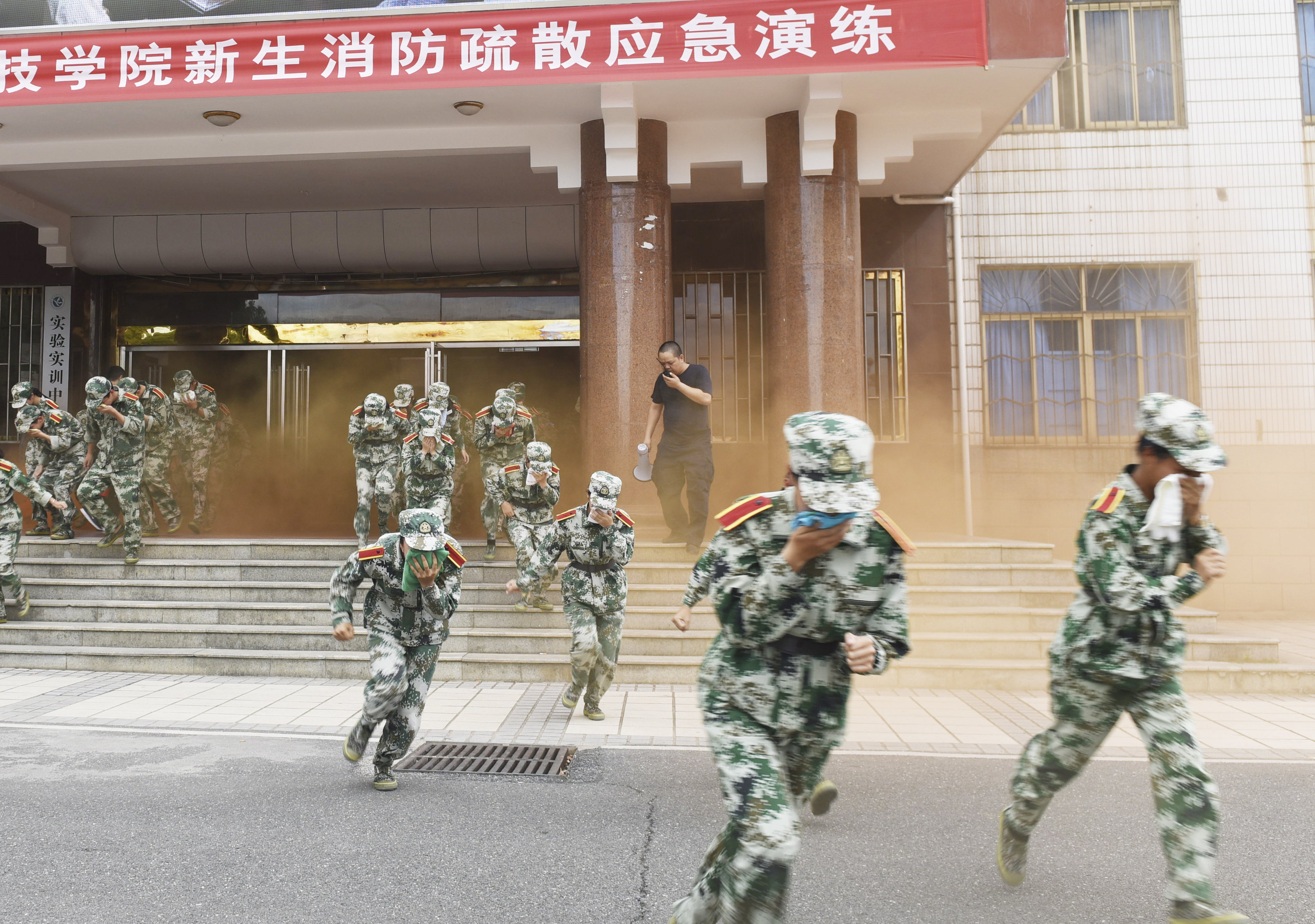 学校开展2019年新生消防疏散应急演练(图)
