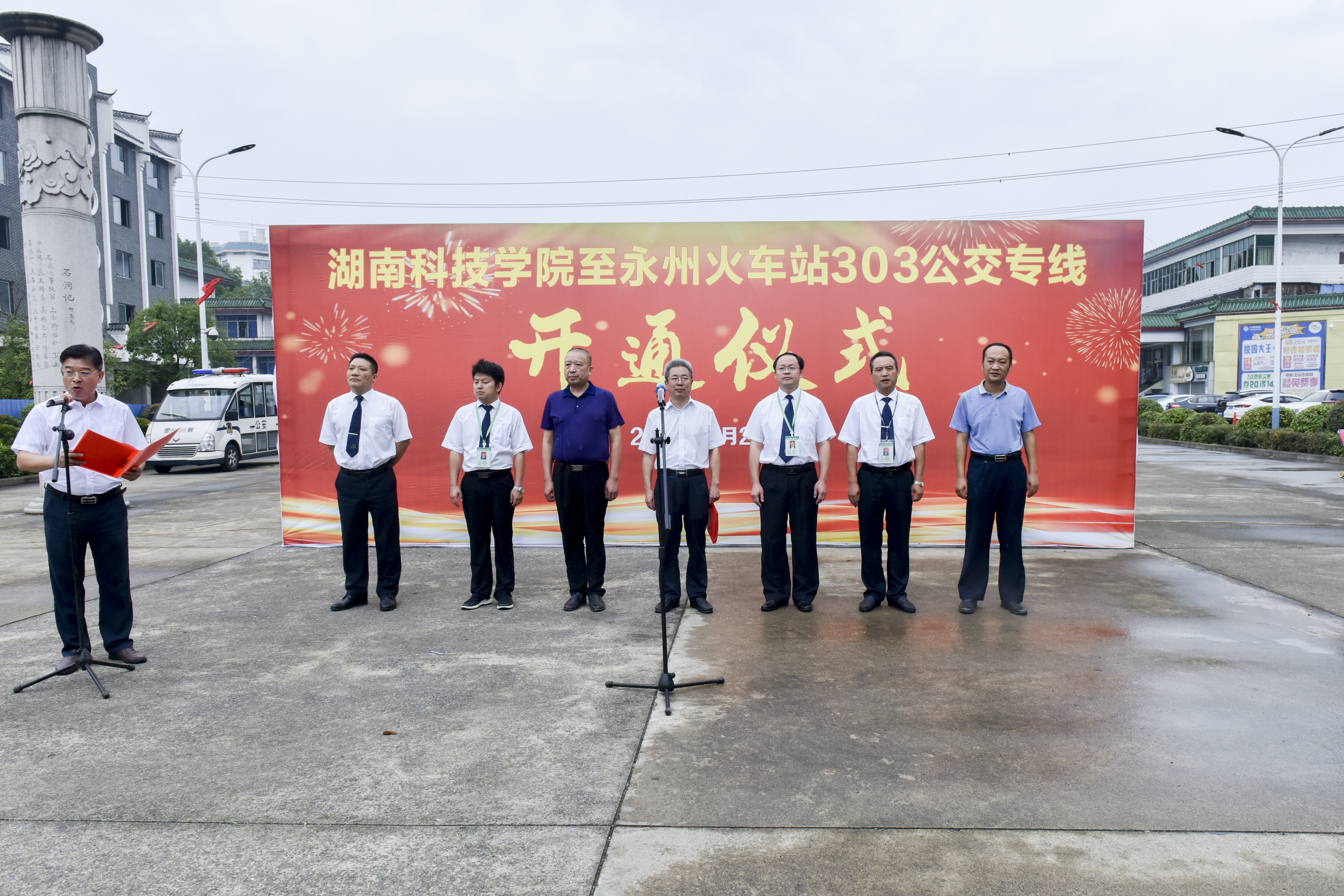 本网讯 8月26日上午,学校至永州火车站303路公交专线开通仪式举行,校党委书记、校长曾宝成,副校长宋宏福参加仪式。