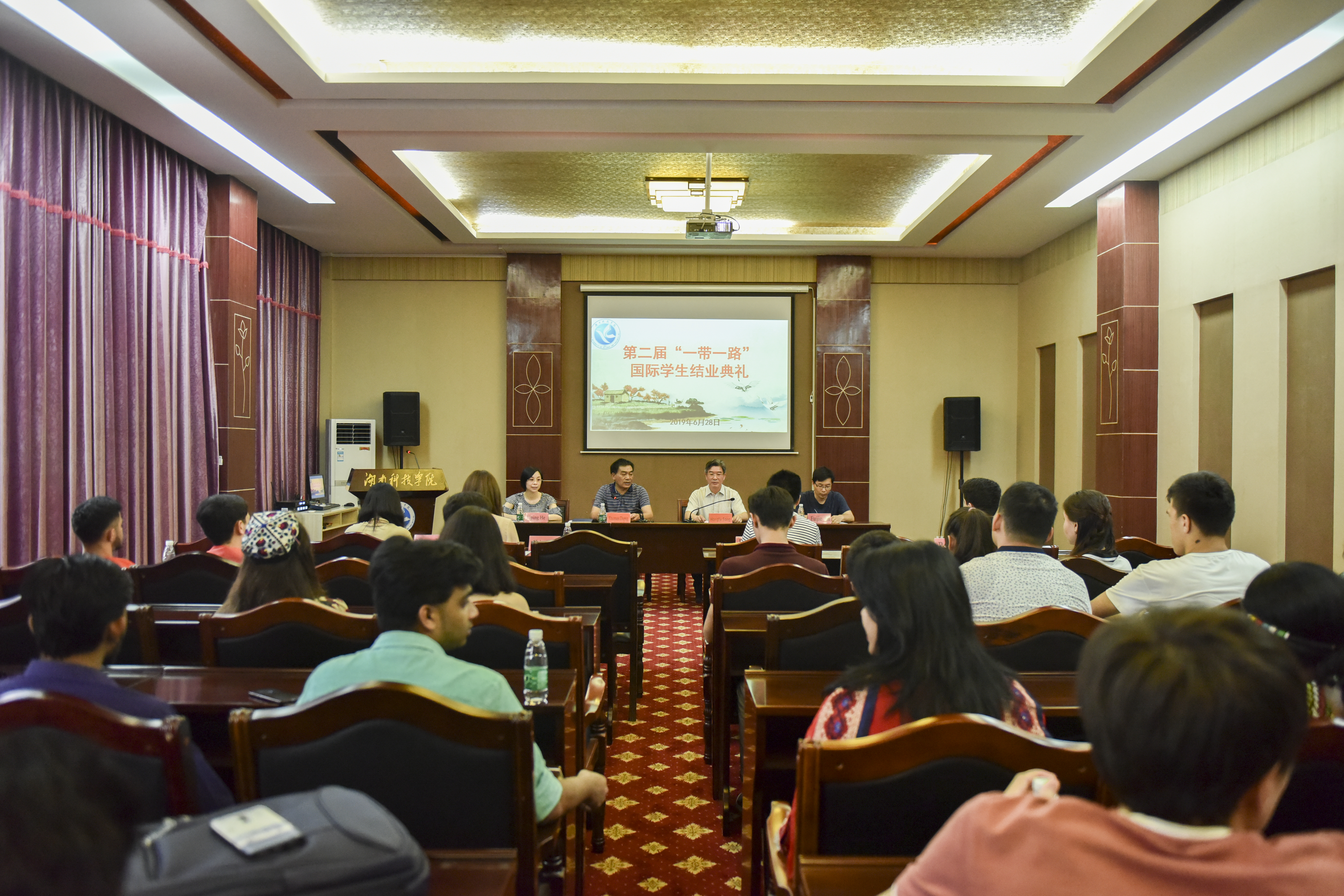 本网讯“我将带着老师和同学热切的关爱回到家乡,做两国交流的友好使者,同时希望金沙集团1862cc越来越好。”康纳动情地说。 6月28日下午,第二届“一带一路”国际学生结业典礼在行政楼三会议室举行。副校长宋宏福,国际交流与合作处、教务处、外国语学院主要负责人,国际学生班主任、任课教师代表以及来自孟加拉国、土库曼斯坦、乌兹别克斯坦等7个国家34名国际学生参加典礼,典礼由国际交流与合作处长郑际根主持。