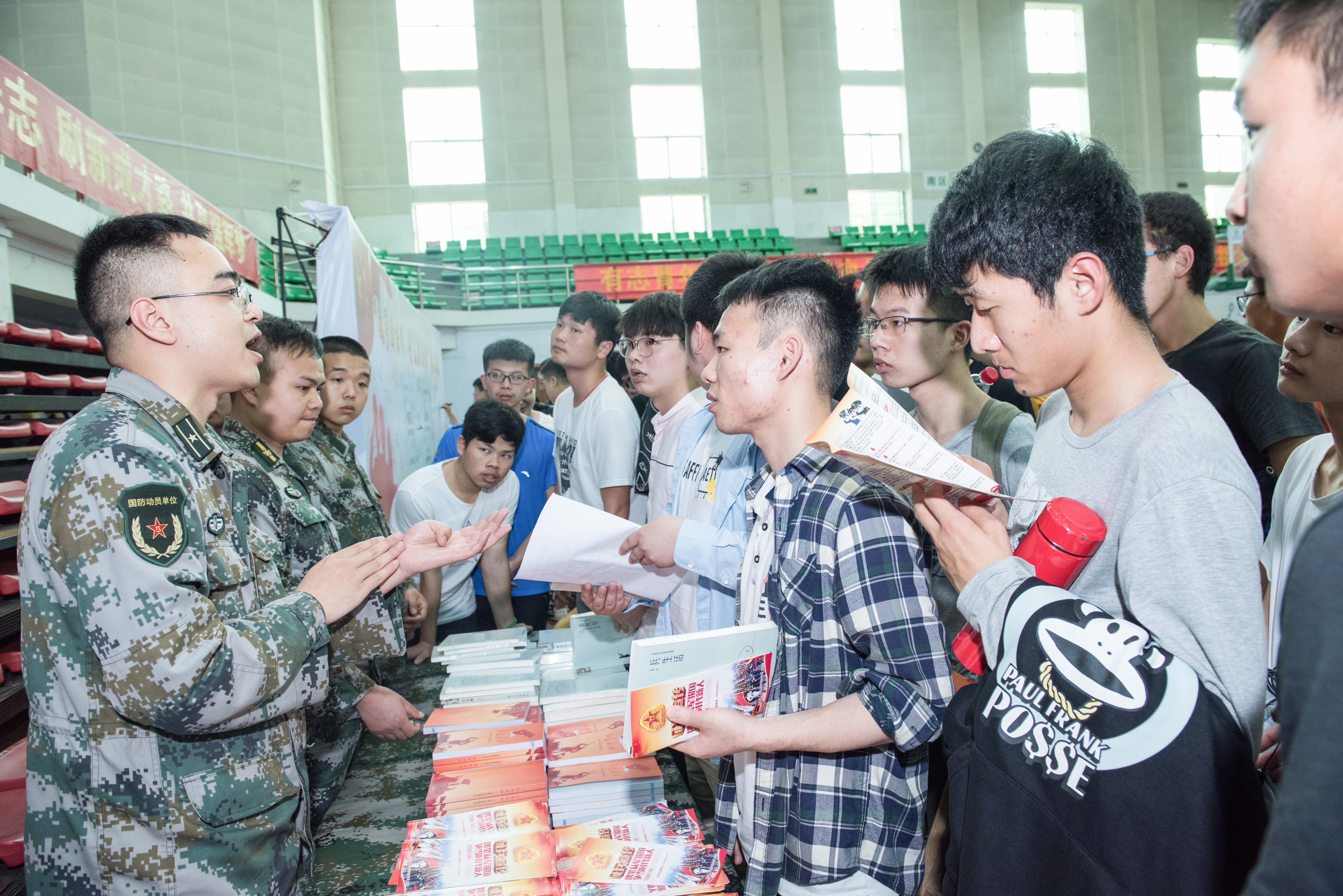 贺辉宣布永州市2019年征兵宣传进校园暨大学生征兵报名正式启动。会后,参会学生积极参与现场签名,咨询征兵工作政策,踊跃地进行现场报名。