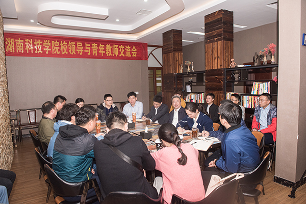 本网讯  3月27日晚,学校在潇湘大讲堂三楼举行校领导与青年教师交流会。党委书记、校长曾宝成,相关职能部门负责人及青年教师代表20余人参加。活动由校团委书记刘佳主持。