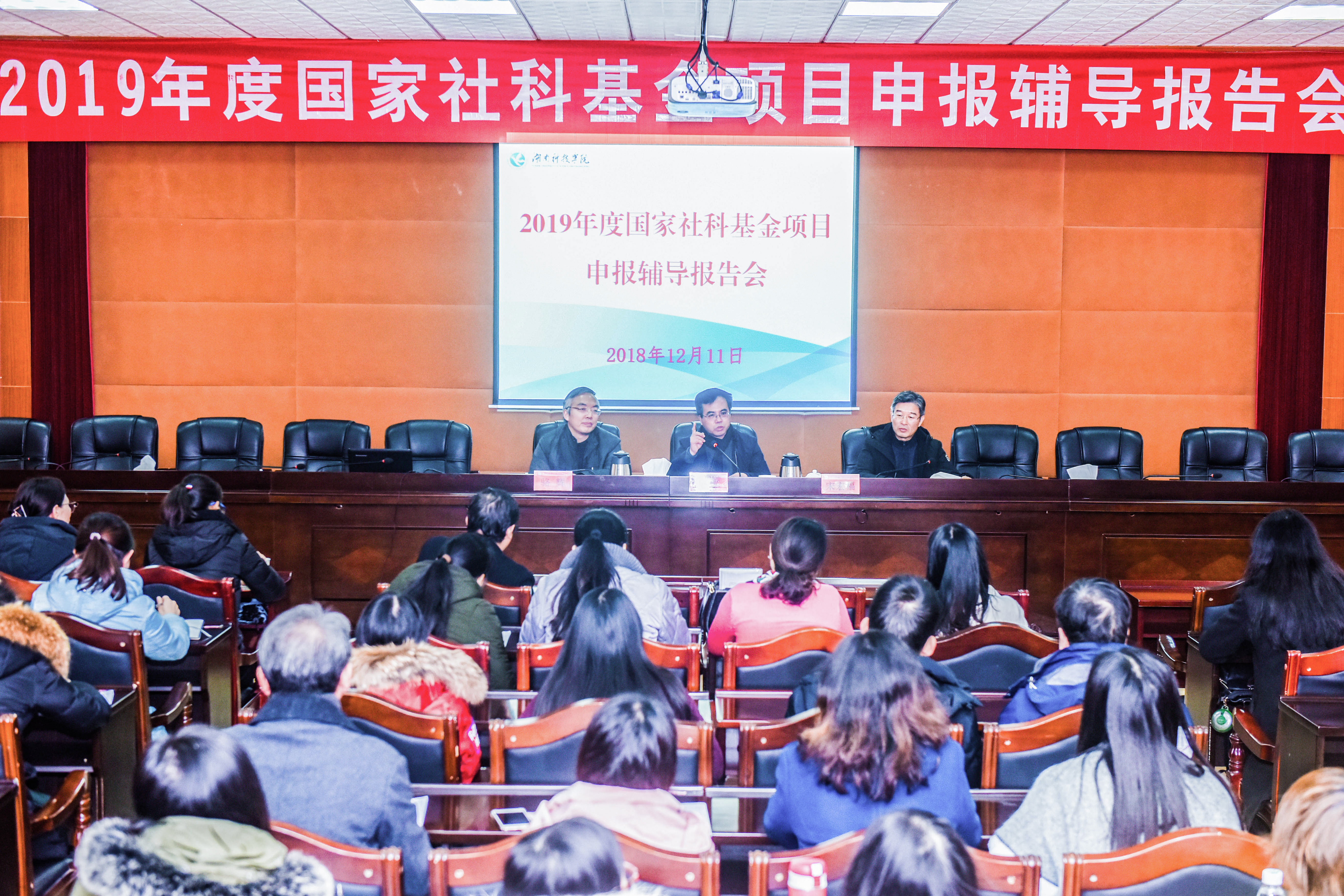 本网讯 为推动学校2019年国家社科基金项目申报工作,帮助教师更好地掌握申报要领与技巧,提高项目申报质量,12月11日下午,学校召开2019年国家社科基金项目申报辅导报告会,邀请湖南省社科规划办主任骆辉作专题辅导报告。校党委书记陈弘与来自各文科学院120余名教师参加。报告会由副校长宋宏福主持。