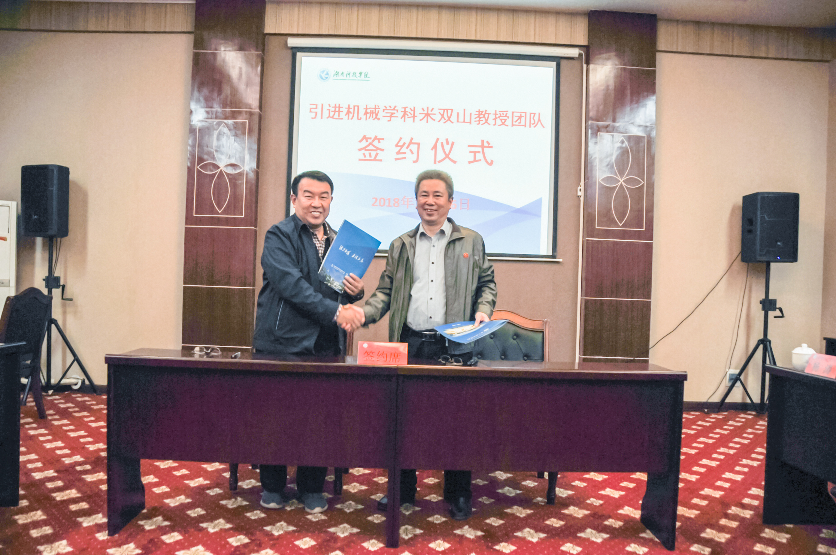 米双山教授团队6名成员,均为教授博士,分别毕业于清华大学、北京理工大学等国内知名高校,长期从事高等教育教学和科研工作,在机械工程领域有丰富的学术成果和较大的学术影响。签约后,米双山教授发表热情洋溢的讲话。他说,团队经过慎重选择,最终决定全职落户金沙集团1862cc,团队成员深深感到学校浓厚的学术氛围和干事创业的工作环境,校园环境优美,领导同事热情友好,办学理念先进,发展前景美好。他向大家描述机械工程学科未来3-5年的发展规划,表示有信心也有实力建设好机械工程学科及相关专业。