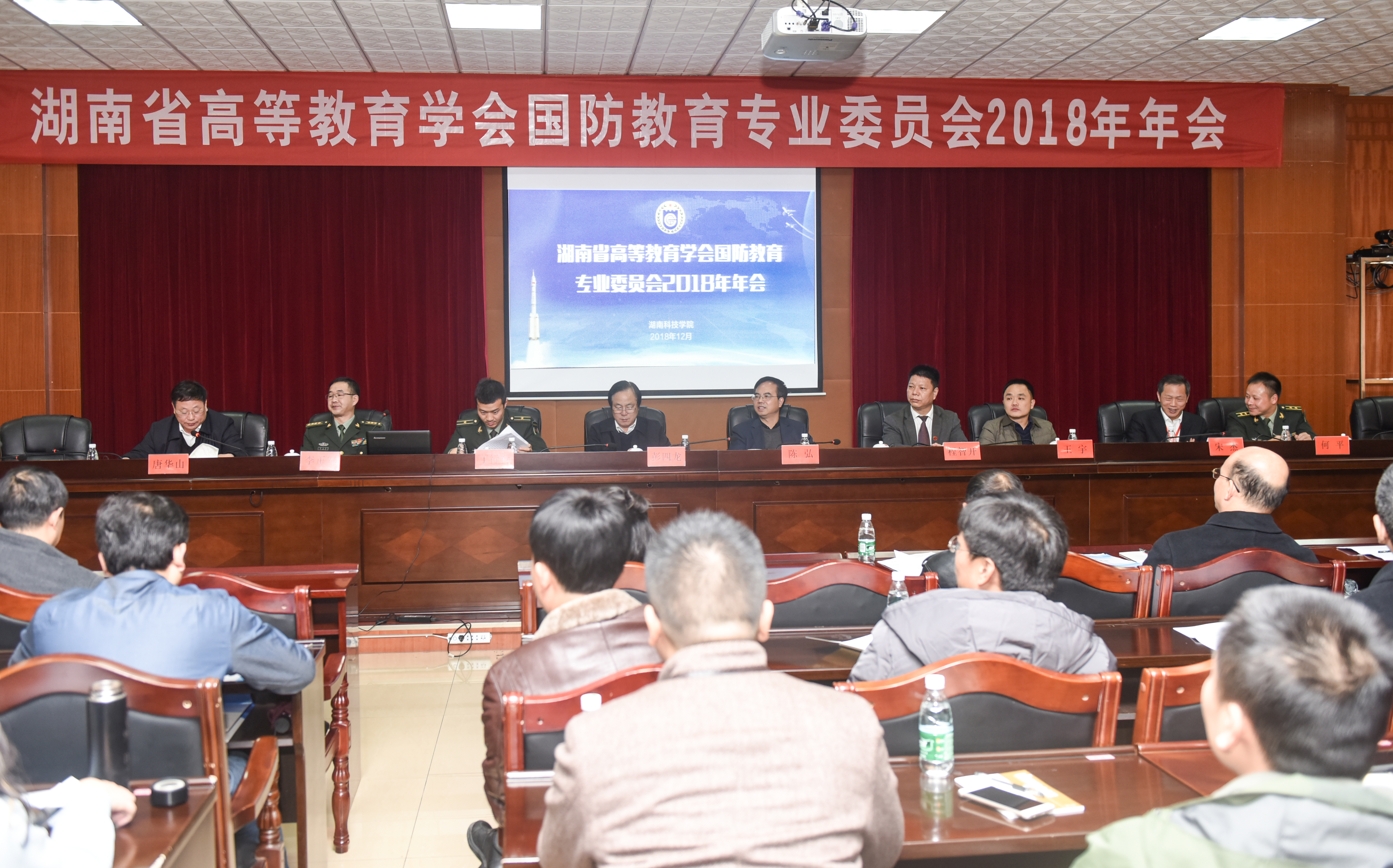 本网讯 12月6日上午,湖南省高等教育学会国防教育专业委员会2018年年会在金沙集团召开,省教育厅体卫艺处处长彭四龙,校党委书记陈弘,副校长程智开,省军区、省教育厅相关领导以及学会会员共120余人参加。