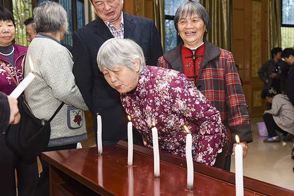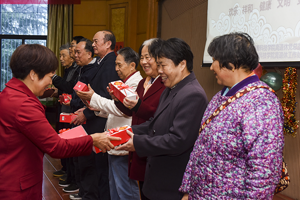 现场还为今年70岁、80岁的老同志集体祝寿,并留影纪念。“感谢学校对我们老年人的关心,通过此次活动,加强了我们之间的联系,促进了大家心灵思想的交流,活跃了节日气氛。”唐蕾艳老师有些激动地说。