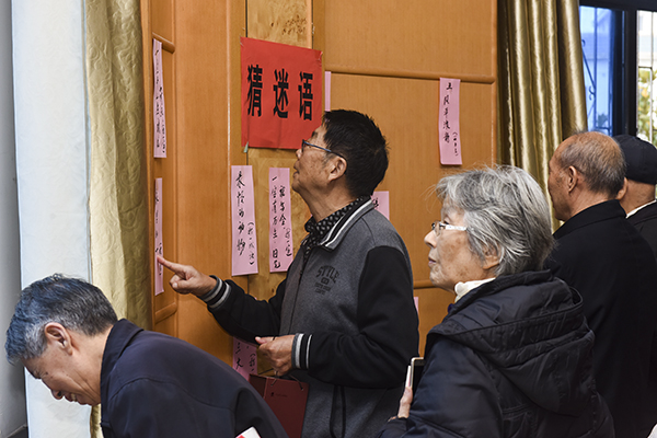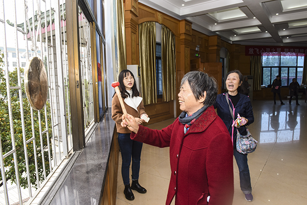 乒乓球接力、双人对踢毽子、双人对拍气球、丢沙包、蒙着眼睛敲锣、夹乒乓球、吹蜡烛、猜谜语等八个游戏模块。活动现场,一片欢乐祥和的景象。