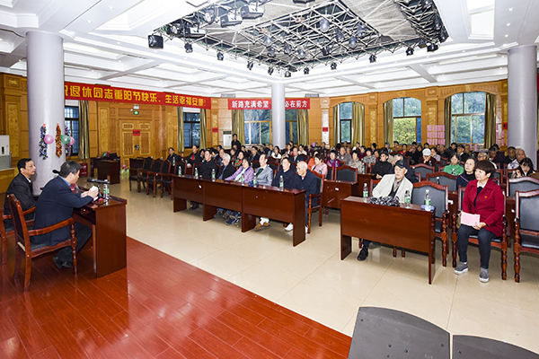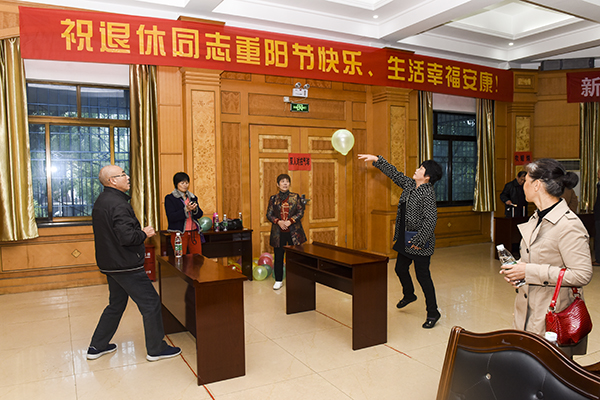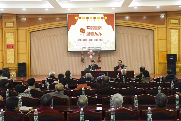 本网讯 龙沙传往事,菊酒对金秋,又是九九重阳时。为进一步丰富金沙集团退休教职工的文化生活,营造“老有所乐,老有所为”的氛围,10月17日,离退休工作处举办“九九重阳节”系列活动。党委副书记唐艳明来到活动现场看望退休职工,活动由刘剑非主持。