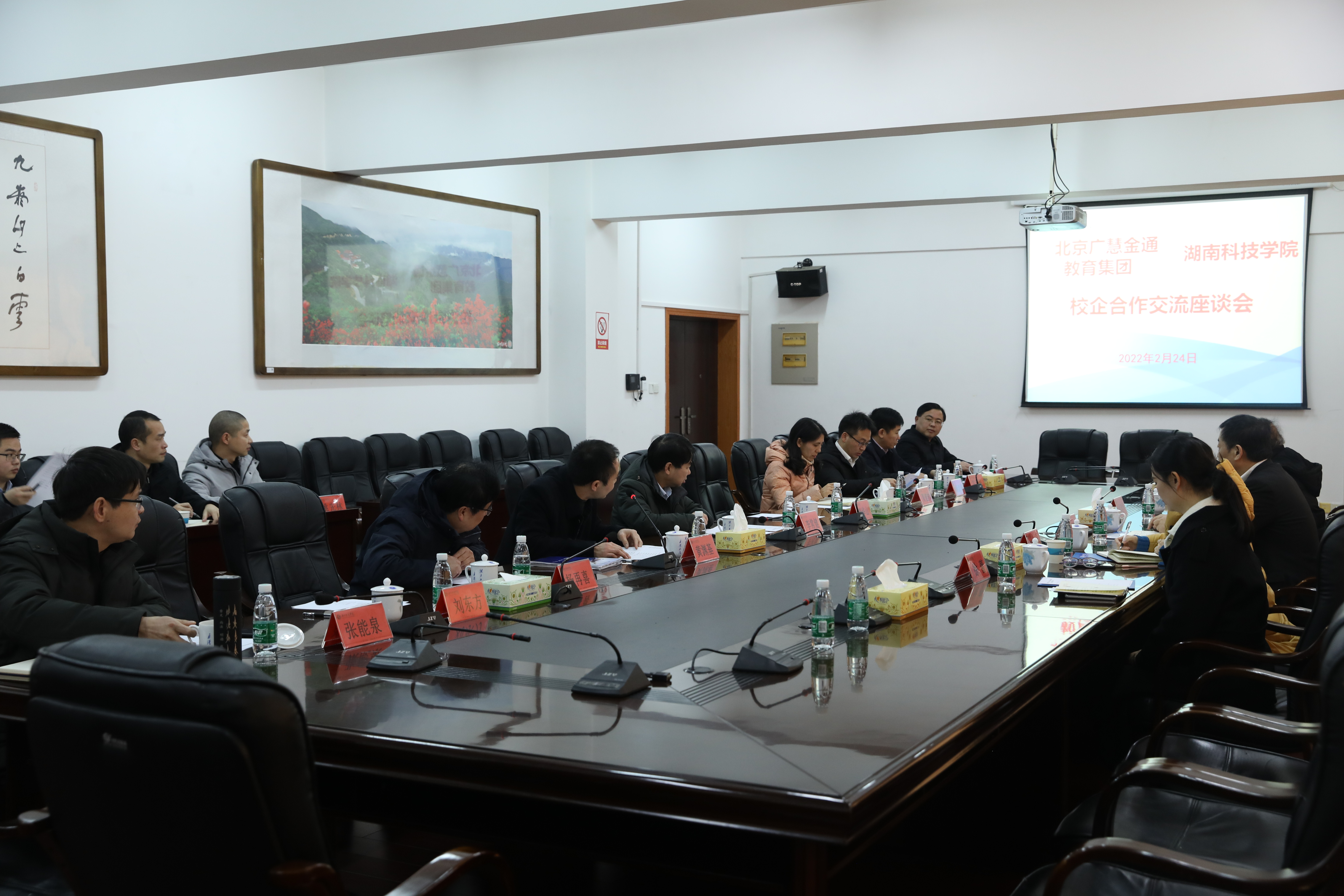 本网讯(记者 王跃)2月24日下午,金沙集团与北京广慧金通教育集团交流座谈会在行政楼六楼会议室举行。校党委委员、副校长李常健,北京广慧金通教育集团常务副总经理付晓军出席会议。