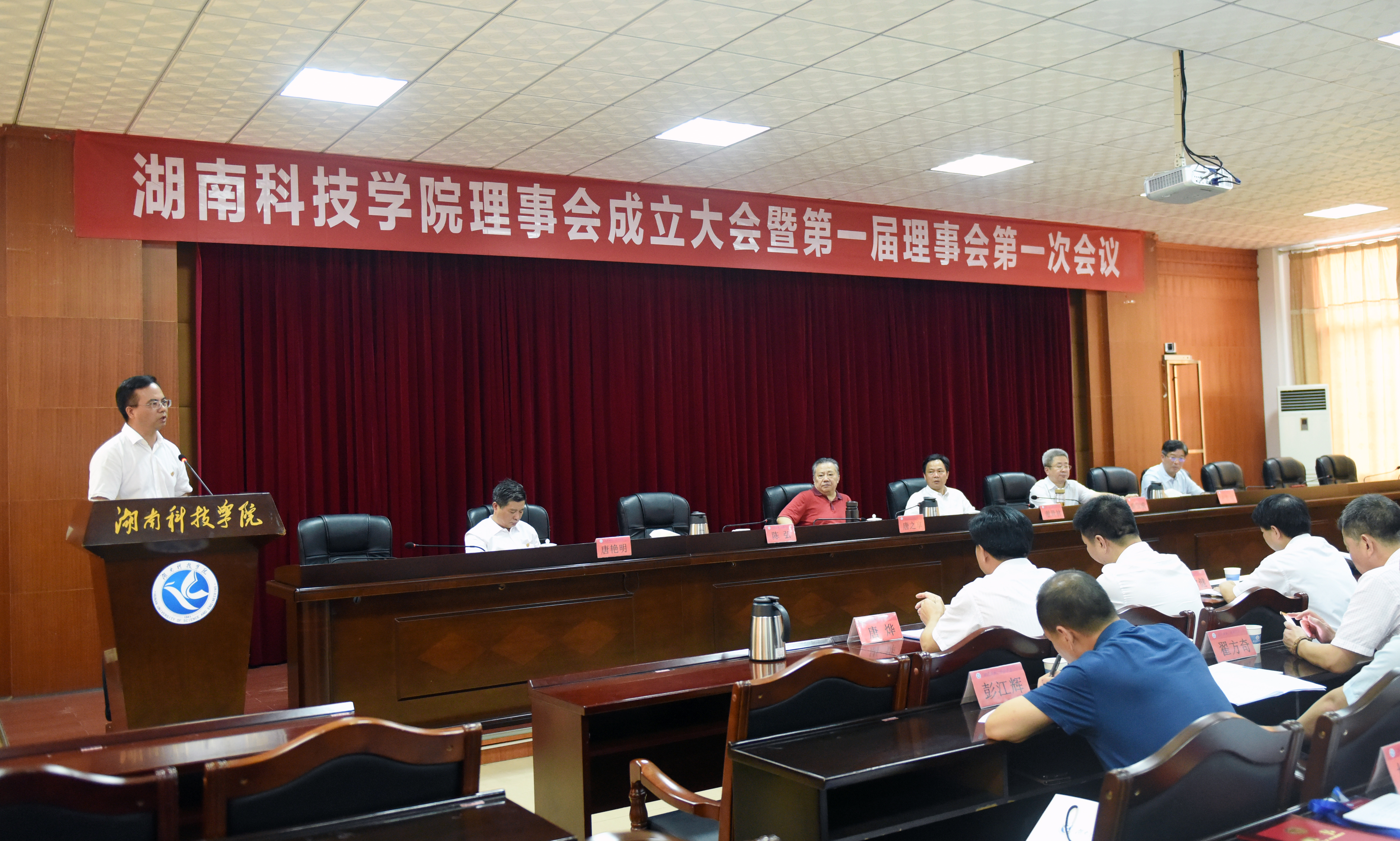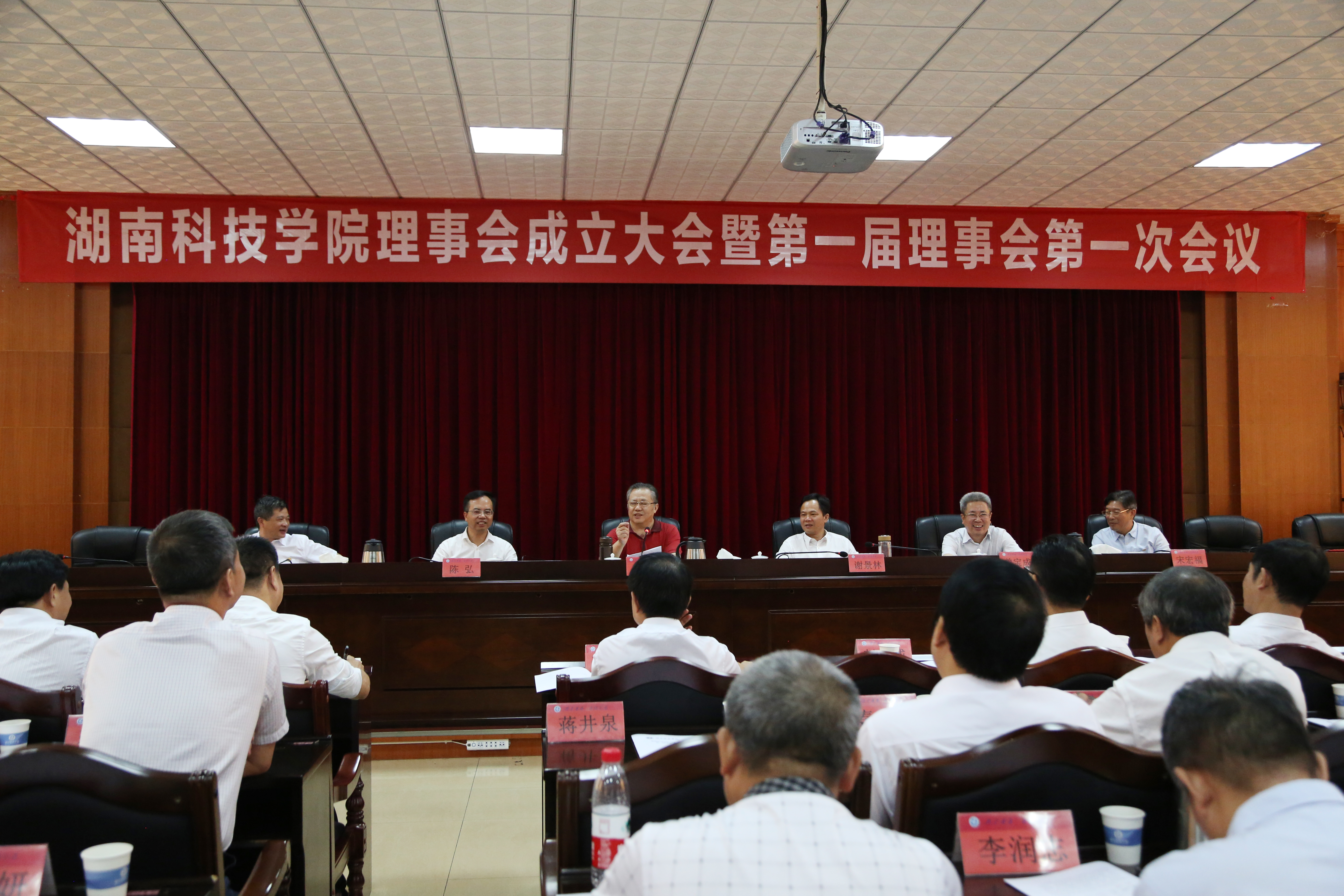 副校长宋宏福宣读第一届理事会成员名单。唐之享、欧阳晓平当选为第一届理事会名誉理事长,陈弘当选为第一届理事会理事长。