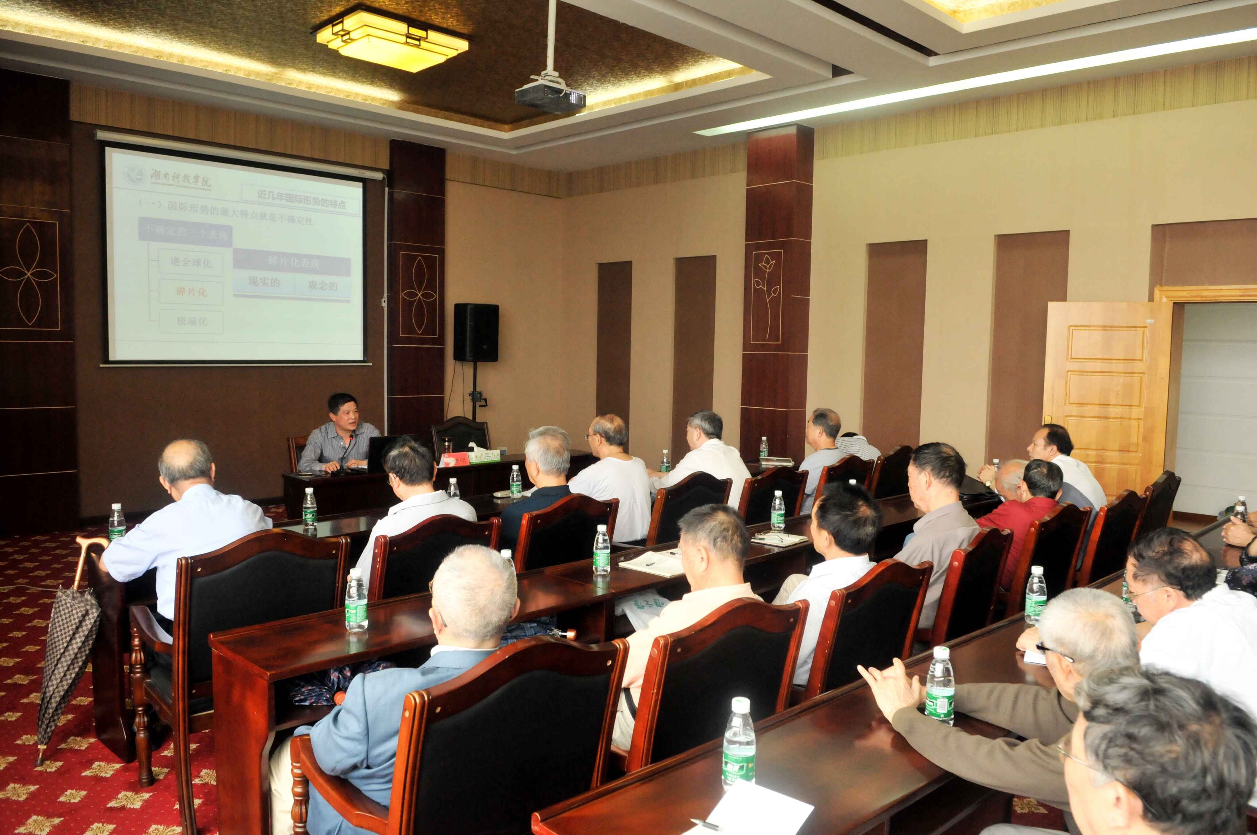 本网讯 为深入学习贯彻习近平新时代中国特色社会主义思想和十九大精神,6月6日下午,党委副书记唐艳明以“当前国际形势的特点和十九大以后的中国外交关系”为题,为金沙集团离退休同志作形势辅导报告。报告会由离退休工作处处长刘剑非主持,50余名离退休同志参加会议。