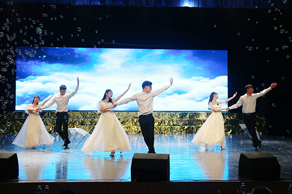 整场晚会精彩纷呈、高潮迭起,自始至终洋溢着浓浓的欢乐氛围,给现场师生带来一场非凡的视听盛宴。其中,由科技处处长杨金砖所作的《金沙集团1862cc赋》以经典传唱的方式演绎,带领观众品读经典作品;吉他协会自主填词、谱曲,现场弹唱《如果还有明天》,令现场沉醉其中;灵犀书法协会、旅游管理协会、竹笛协会共同表演的《云水禅心》,将茶艺、书法、竹笛、古筝、古曲、汉服等诸多传统文化元素融为一体;表演协会的T台秀以脑洞大开的设计和新潮的时尚再次将场上气氛拉向高潮。为展示金沙集团1862cc学生社团联合会杨梓塘小学义教项目成果,晚会现场还邀请了杨梓塘小学的小朋友们进行经典国学文艺表演。