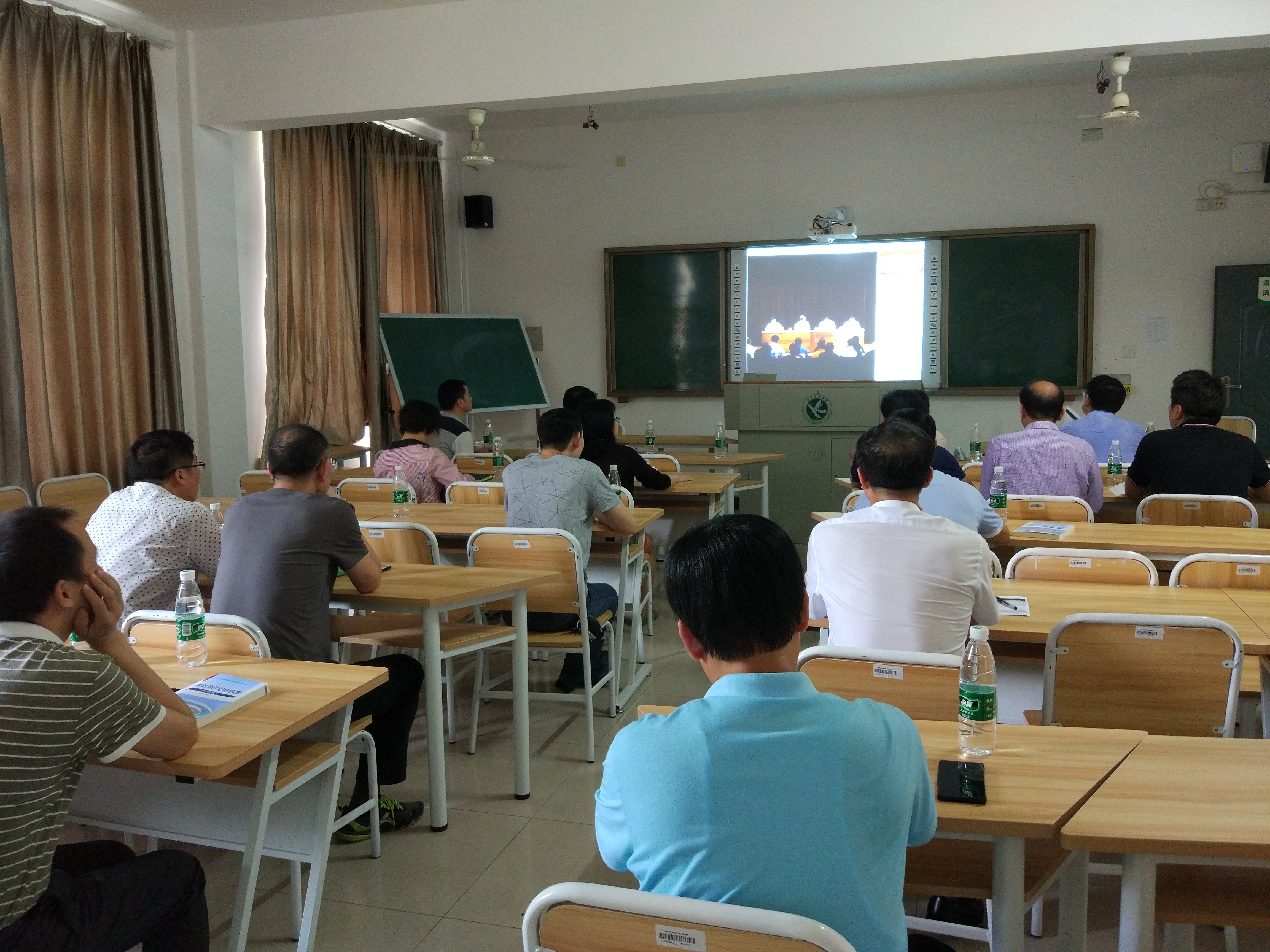 全体人员集中收听教育部部长陈宝生讲话,了解全国高校思政课2018年版教材修订情况说明、教材使用和培训工作部署安排。