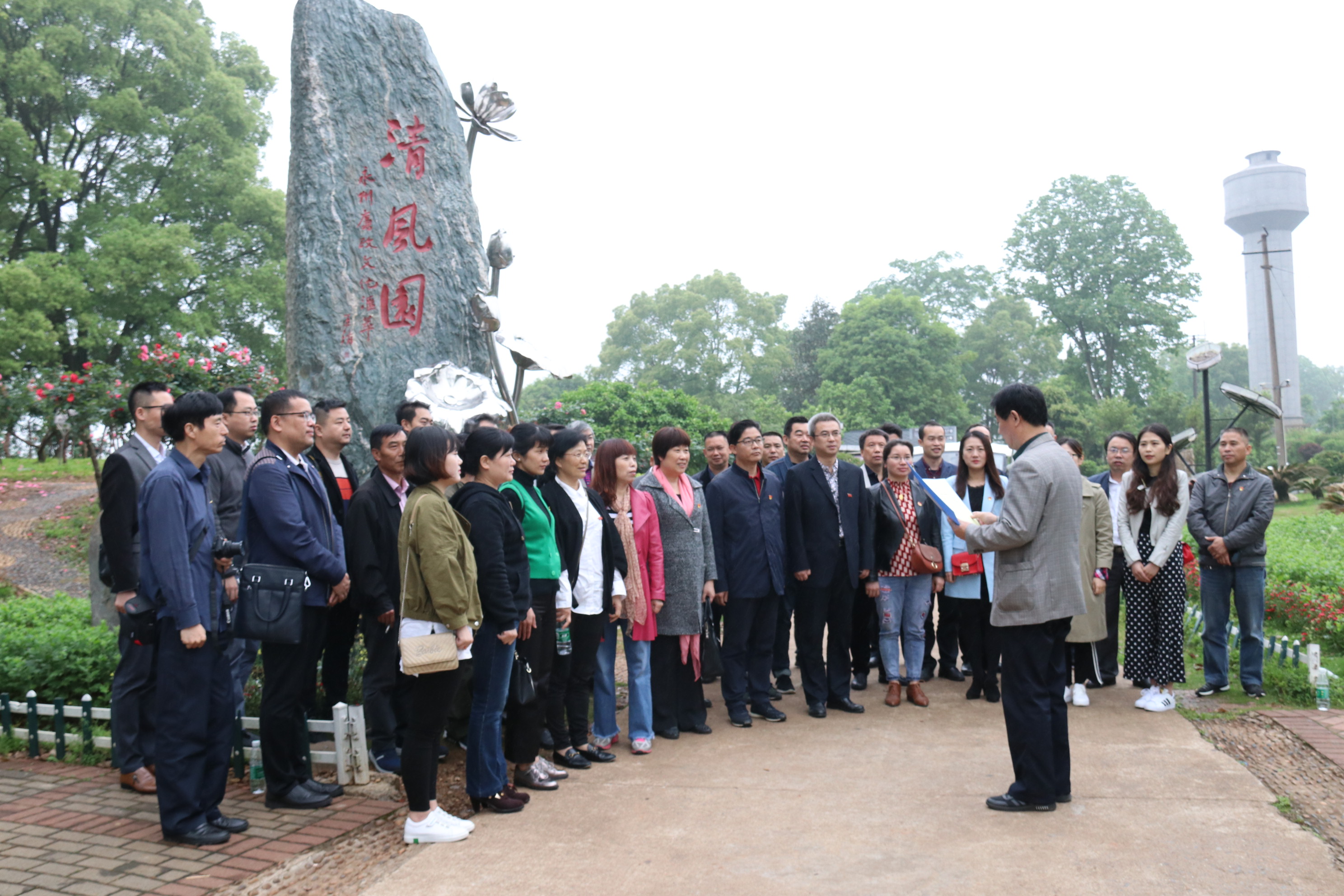 本网讯 4月24日,学校组织党员干部赴永州市廉政文化主题公园清风园开展廉政主题党日活动。纪委书记彭立威、校纪委委员、直属党组织书记和纪检委员等党员干部参加。