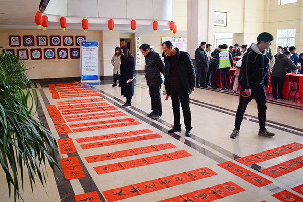 “春回大地金鸡唱,福满中华玉犬欢”“事事如意大吉祥,家家顺心永安康”等一副副饱含着浓浓年味、饱含着美好祝福的春联引得师生们驻足欣赏,让师生们对春联蕴含的中华传统文化精髓有了更深刻地了解。同时,活动现场琳琅满目的“猜灯谜”游戏也受到大家的热捧,师生们积极参与,场面有趣热闹,猜中灯谜者可获得一副精美的春联。