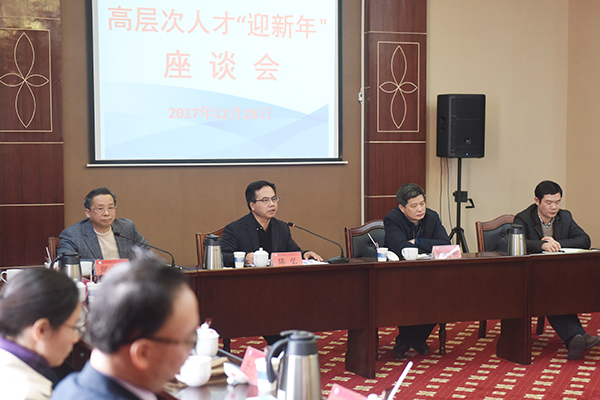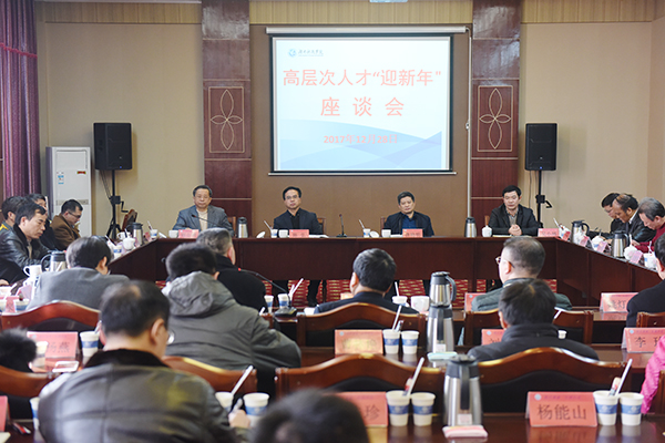 本网讯  12月28日下午,学校举行高层次人才迎新年座谈会,党委书记陈弘,党委副书记唐艳明,副校长郑山明、吴小林与来自各教学学院的高层次人才代表、各职能部门负责人及教学学院院长齐聚一堂,广泛听取大家对学校改革发展的意见建议,共商学校未来发展大计。