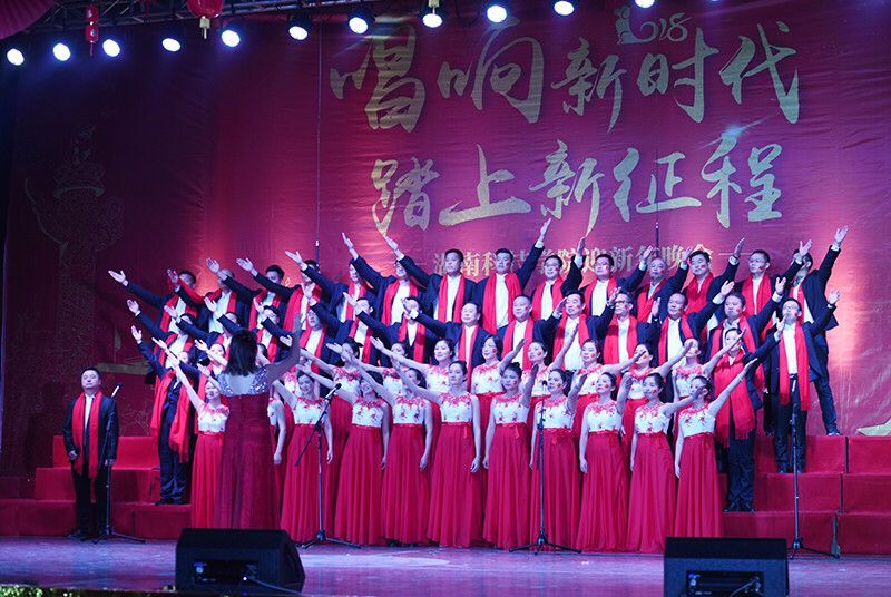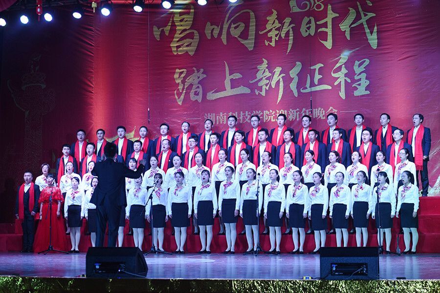 晚会在大合唱《歌唱祖国》、《潇湘之歌》中拉开序幕,全校700多名教职工组成11支代表队参加合唱比赛,歌唱祖国的繁荣昌盛,用歌声献上了对祖国的美好祝愿。《人民军队忠于党》、《同一首歌》等经典曲目的表演,以激昂豪迈的精神面貌激荡着现场师生的情感;《我爱你,中国》、《走进新时代》等歌曲,用铿锵坚定歌声唱出了当代中华儿女对祖国的深情热爱;《在太行山上》、《游击队之歌》《我的中国心》等精彩歌曲的不断上演,让大家重温了那段激情燃烧的岁月,再现了革命先烈威武不屈的民族精魂,让整场晚会气氛热烈、掌声雷动,深刻诠释金沙集团“不忘初心立德树人,牢记使命创双一流”的思想内涵,充分展现了学校以团结向上的精神风貌迎接新时代的喜悦之情和坚定信念。