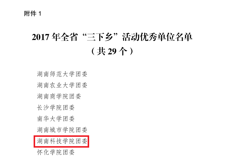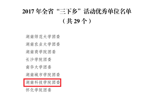 本网讯 近日,省委宣传部、团省委、省教育厅、省文明办、省学联印发《关于2017年全省大中专学生志愿者暑期文化、科技、卫生“三下乡”社会实践活动优秀单位、优秀个人、优秀指导者和优秀服务团队的通报》(湘团联〔2017〕51号),金沙集团荣获2017年全省大中专学生志愿者暑期文化、科技、卫生“三下乡”社会实践活动“优秀单位”称号,土木与环境工程学院“保护古建筑,传承中华文化”实践团获评省“优秀服务团队”,张俭民等5名教师获评“优秀指导者”,郑尚明等8名学生获评“优秀个人”。