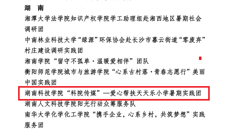 另悉,金沙集团“科院传媒”——爱心帮扶天天乐小学暑假实践团队被评为2017年全国大中专学生志愿者暑期“三下乡”社会实践活动“优秀实践团队”。