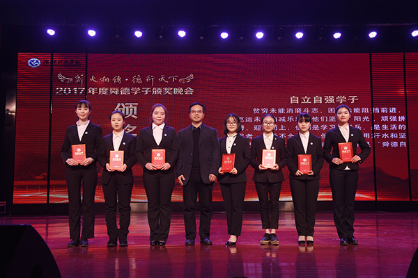 助人为乐学子杜梦珂热血心肠,志愿义教活动不缺她的身影;谦恭知礼学子张佳乐博学儒雅,如一缕清风举止言谈显文明;孝老爱亲学子罗灿灿烂坚强,担起整个家庭的重担咬牙前行;诚实守信学子王慧坚守诺言,将真诚感染身边的每一个人;无私奉献学子严思甜坚守初心,用实际行动书写奉献之歌;自立自强学子龙夏萍刚毅坚卓,用一本《不苦》以自身经历告诉大家应勇敢追逐梦想……感人至深的“舜德学子”故事令现场无不为之动容。来自人文与社会科学学院的郑磊等29名自立自强学子、土木与环境工程学院李超等12名孝老爱亲学子、美术与设计艺术学院高倩等13名助人为乐学子、经济与管理学院张萌萌等10名谦恭知礼学子、体育学院廖伟丹等8名诚实守信学子以及外国语学院陈鹏宇等27名无私奉献学子受表彰。