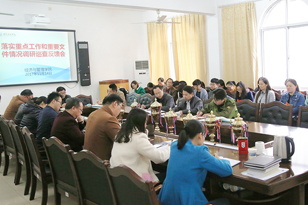 调研组分别就各教学学院党建和思想政治工作、师资队伍建设、人才队伍建设、科研和服务地方、专业建设和教学改革、创业创新教育等方面进行反馈,并就共性问题如何整改提出要求,强调要以问题为导向,坚持和加强党的建设,加强思想政治工作,重视人才队伍建设、学科专业建设,落实立德树人根本任务,全面推进学院各项工作稳步前进。