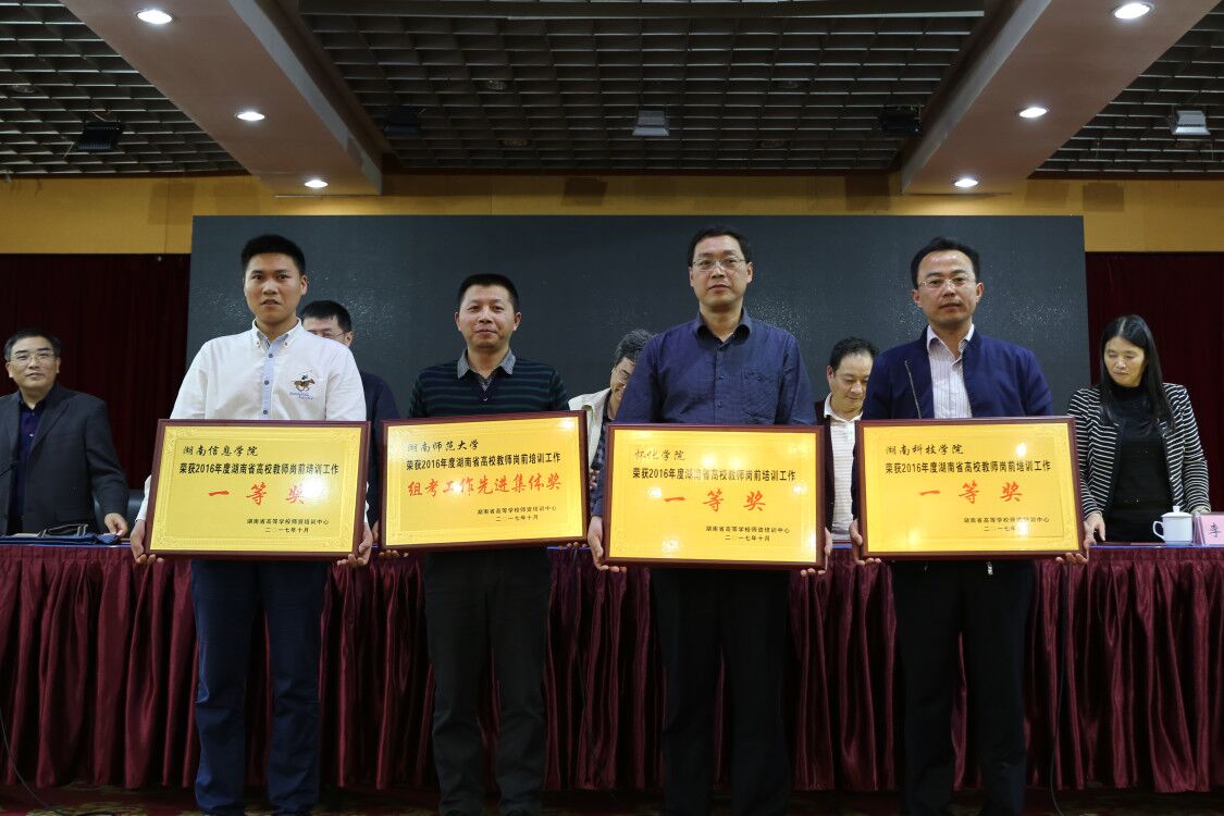 会议表彰了2016年度高校教师岗前培训先进集体、先进管理工作者和优秀学员。金沙集团荣获2016年度湖南省高等学校教师岗前培训管理工作一等奖,这是金沙集团2014年以来再次荣获一等奖。赵意成被评为先进管理工作者,李芳佳等七位老师被评为优秀学员。人事处副处长杨攀代表金沙集团在表彰会上作典型发言(唯一典型发言)。