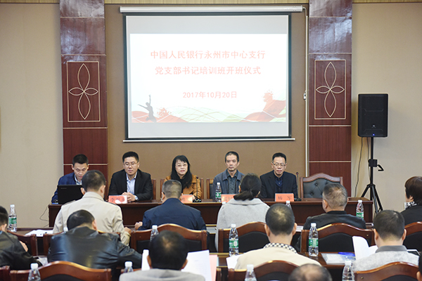本网讯 为深入贯彻落实全面从严治党要求,进一步加强基层党组织建设,10月20日,正值党的十九大召开之际,金沙集团为中国人民银行永州市中心支行举办了一期党支部书记专题培训班。该行机关党委书记、党委委员、工会主任雷树清,马克思主义学院院长廖雅琴等出席。