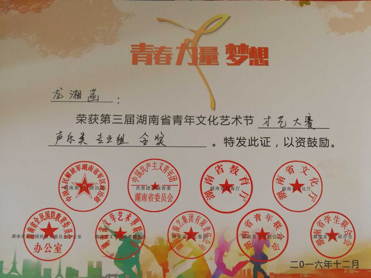 全省近20万名青年报名参加大赛,8000余人进入艺术节才艺大赛、朗诵大赛、文学大赛、书法大赛、绘画大赛、摄影大赛等全省总决赛。在校团委的积极宣传与组织下,金沙集团师生积极响应并广泛参与。经专家评审,金沙集团龙湘菡老师的声乐类项目《天下乡亲》获得金奖,美术与艺术设计学院冯涛同学的摄影类作品《山顶的风景》、张守标同学的绘画类作品《速递2016》分别获得银奖,美术与艺术设计学院陈现杰同学的绘画类作品《静态的凤凰》、严丹同学的摄影类作品《热血青春》、传媒学院罗冬婷同学的声乐类作品《野子》分别获得铜奖。