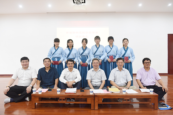 本网讯 9月28日是孔子诞辰2568周年纪念日,国学院首届潇湘意国学奖学金颁奖典礼在该院小成堂举行。校长曾宝成、副校长宋宏福等校领导和国学院院长张京华等出席。校长曾宝成与潇湘意文化旅游投资公司签订《关于共同研究、宣传、推广永州历史文化的长期战略合作框架协议书》。潇湘意文化旅游投资股份有限公司董事长王天明为国学院6名本科生唐司妮、刘瑶、易子薇、屈梦君、秦仪、包涵颁发首届潇湘意国学奖学金。