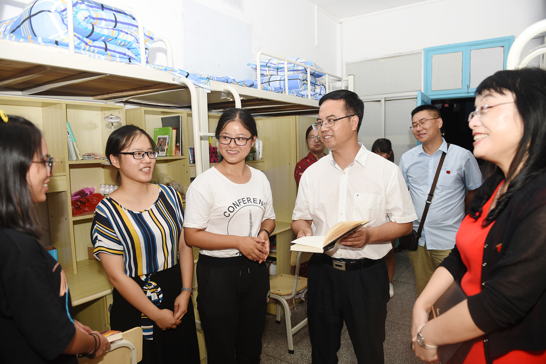 9月17日晚,党委书记陈弘深入学生宿舍看望新生。