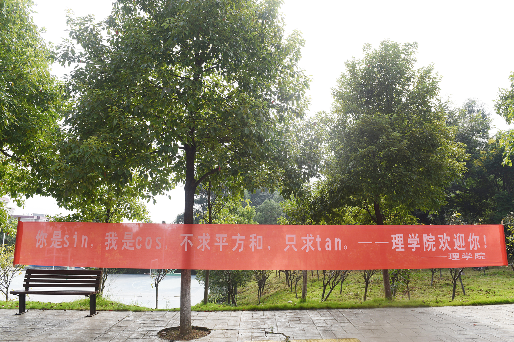 在学校主干道两旁,各学院迎接新生的横幅相继“出炉”、逐一“亮相”,迎新标语用词新颖、引人注目。其中,既有凸显专业特点的妙言巧语,也有文艺范儿十足的个性定制,或温情、或幽默、或励志的横幅让校园迎新氛围更加浓厚。