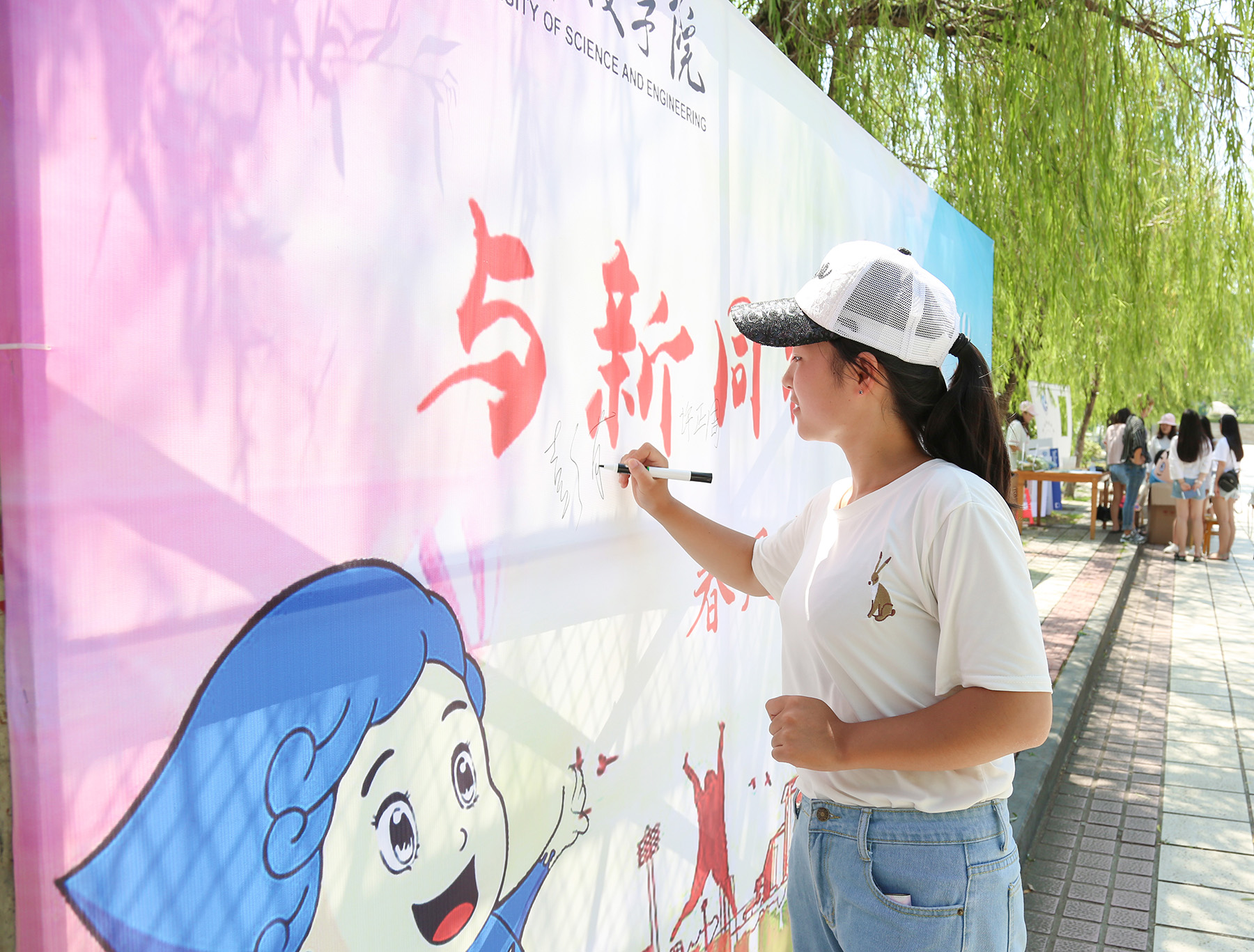 9月15日下午,微风和畅,阳光明媚,伴着秋日的清凉,学校迎新工作拉开序幕。进入校园,喜庆的迎新展板映入眼前。